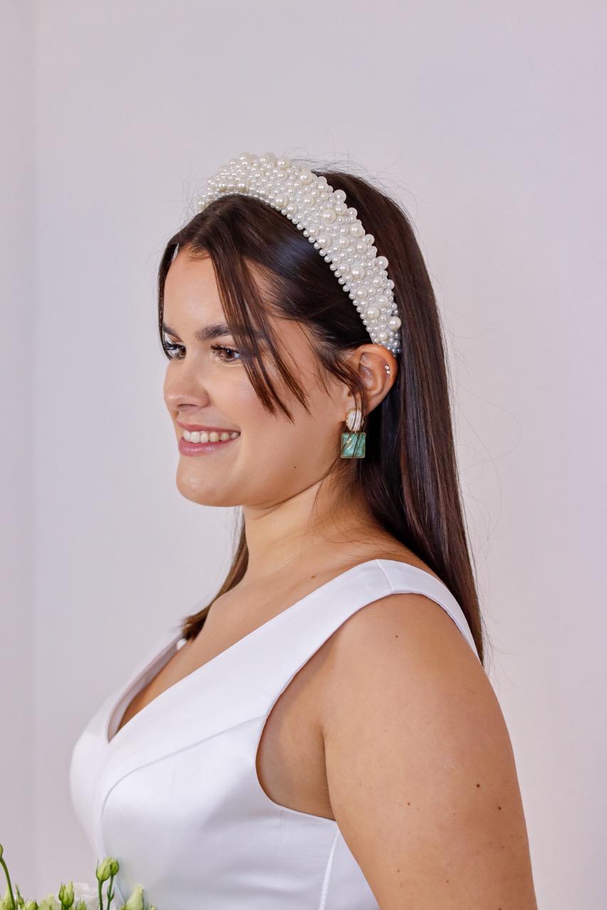 Esta elegante bandelete é a escolha ideal para noivas ou convidadas que procuram um toque de sofisticação e brilho clássico. Com uma estrutura robusta e volumosa, este acessório destaca-se pelo seu intrincado trabalho artesanal, sendo inteiramente recoberta por uma delicada composição de pérolas e cristais. O design apresenta uma textura rica e multidimensional, onde o brilho suave das pérolas se funde com os reflexos luminosos das pedrarias, criando um efeito de “tiara moderna” que ilumina o rosto e valoriza qualquer penteado, desde o cabelo solto e natural até aos apanhados mais elaborados.