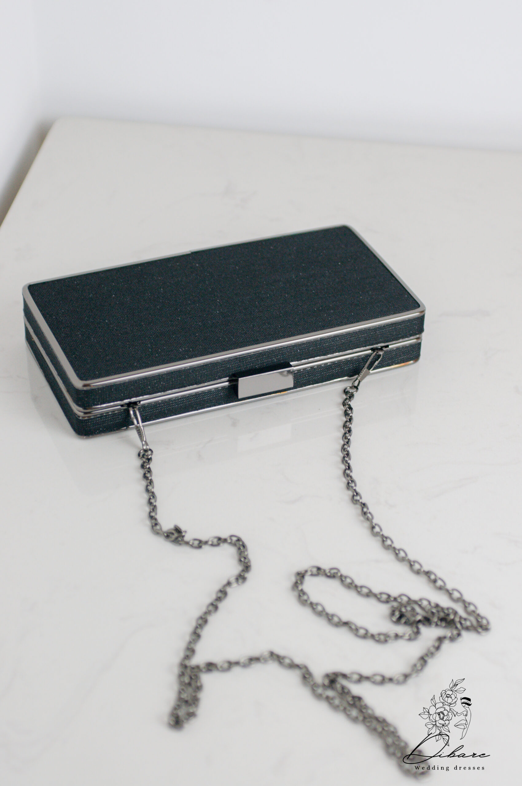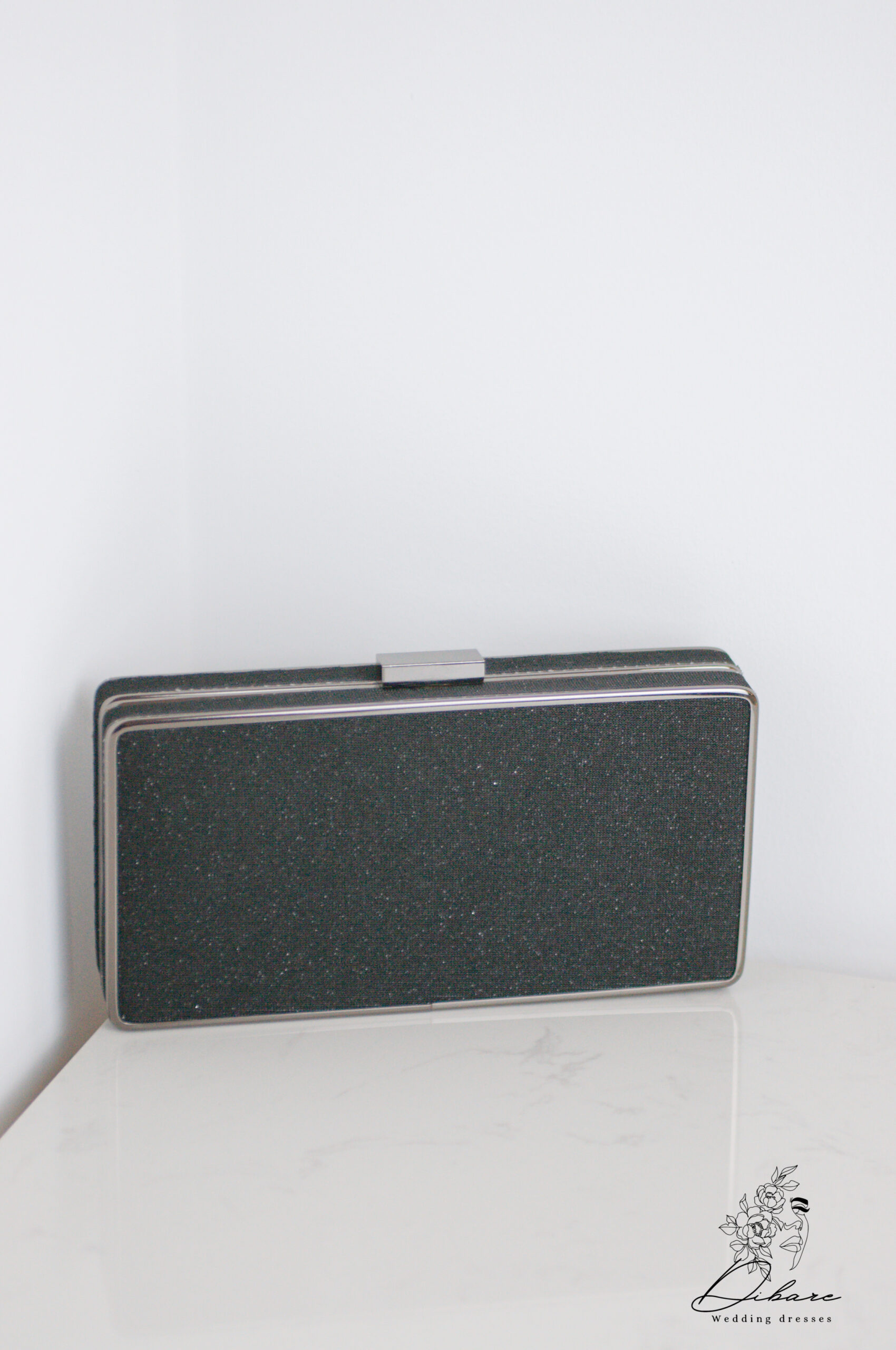 Apresentamos a clutch perfeita para elevar instantaneamente o seu visual de festa ou evento formal. Este acessório de design retangular e rígido combina sofisticação estruturada com um toque de brilho sutil. Confeccionada num tecido texturizado na cor preto profundo, o corpo da mala é realçado por finas molduras metálicas nas extremidades, conferindo-lhe um acabamento luxuoso e duradouro. O seu formato box garante que os seus essenciais se mantenham seguros e protegidos.