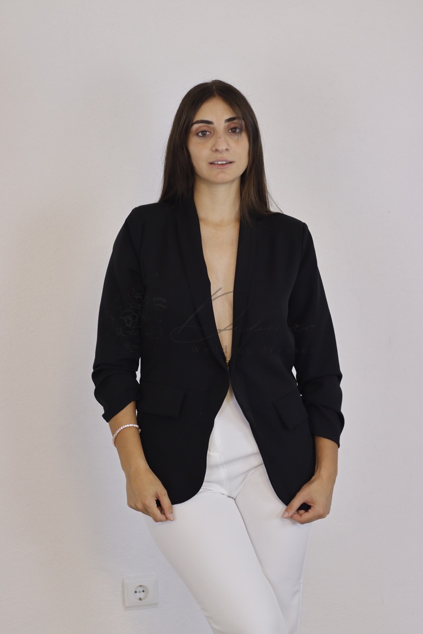 Este blazer clássico em preto é a definição de elegância intemporal e versatilidade, sendo uma peça essencial em qualquer guarda-roupa feminino. Com um corte estruturado que define a silhueta de forma subtil, este modelo apresenta lapelas finas e um design minimalista, ideal para transitar com facilidade entre o ambiente de trabalho e eventos sociais requintados. Confeccionado com um tecido de alta qualidade e acabamento impecável, o blazer oferece um ajuste confortável e sofisticado. A sua versatilidade permite usá-lo de forma mais audaz, como peça única para um visual de noite impactante, ou sobre vestidos e camisas para um estilo formal e profissional.