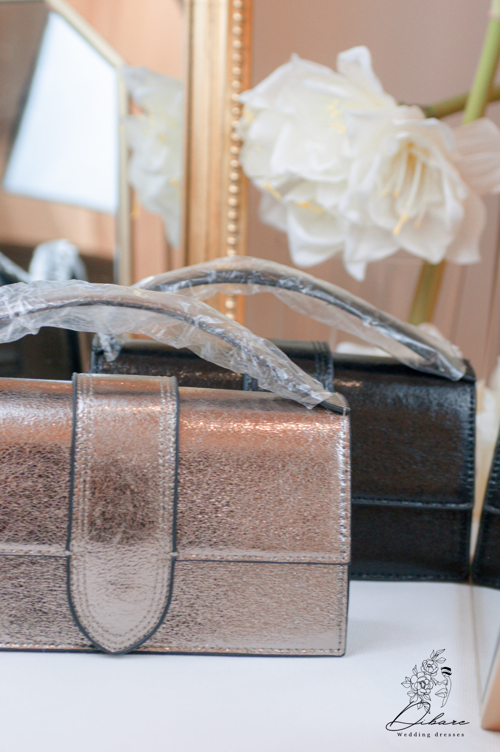Apresentamos esta elegante carteira de mão/clutch, um acessório indispensável para a mulher que valoriza o requinte e a versatilidade. Com um design de linhas limpas e um fecho de aba frontal distintivo, esta peça transita facilmente do dia para a noite. A versão em ouro rosa metálico exibe um acabamento ligeiramente texturizado e brilhante, capturando a luz de forma subtil para um toque de luxo moderno. É a escolha perfeita para casamentos, festas ou para elevar um conjunto casual. Ao lado, o modelo em preto brilhante é a personificação da elegância clássica. O seu acabamento lustroso confere-lhe uma sofisticação intemporal, garantindo que seja o complemento perfeito para qualquer look de noite, mantendo os seus essenciais seguros com estilo. Ambos os modelos incluem uma alça fina e discreta (visível embalada), que permite usá-la como uma bolsa de ombro, conferindo-lhe a máxima conveniência.
