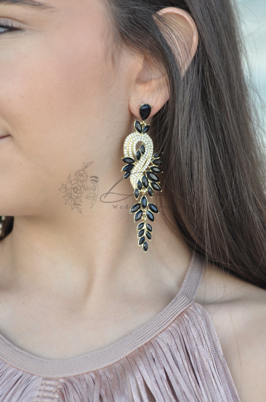 Estes brincos de gala são a personificação do luxo e da sofisticação, desenhados para serem a peça central de qualquer visual festivo. Com uma estrutura pendente imponente, a peça apresenta um design orgânico e fluido que combina harmoniosamente o brilho clássico do dourado com o mistério profundo de pedrarias em tom ónix.