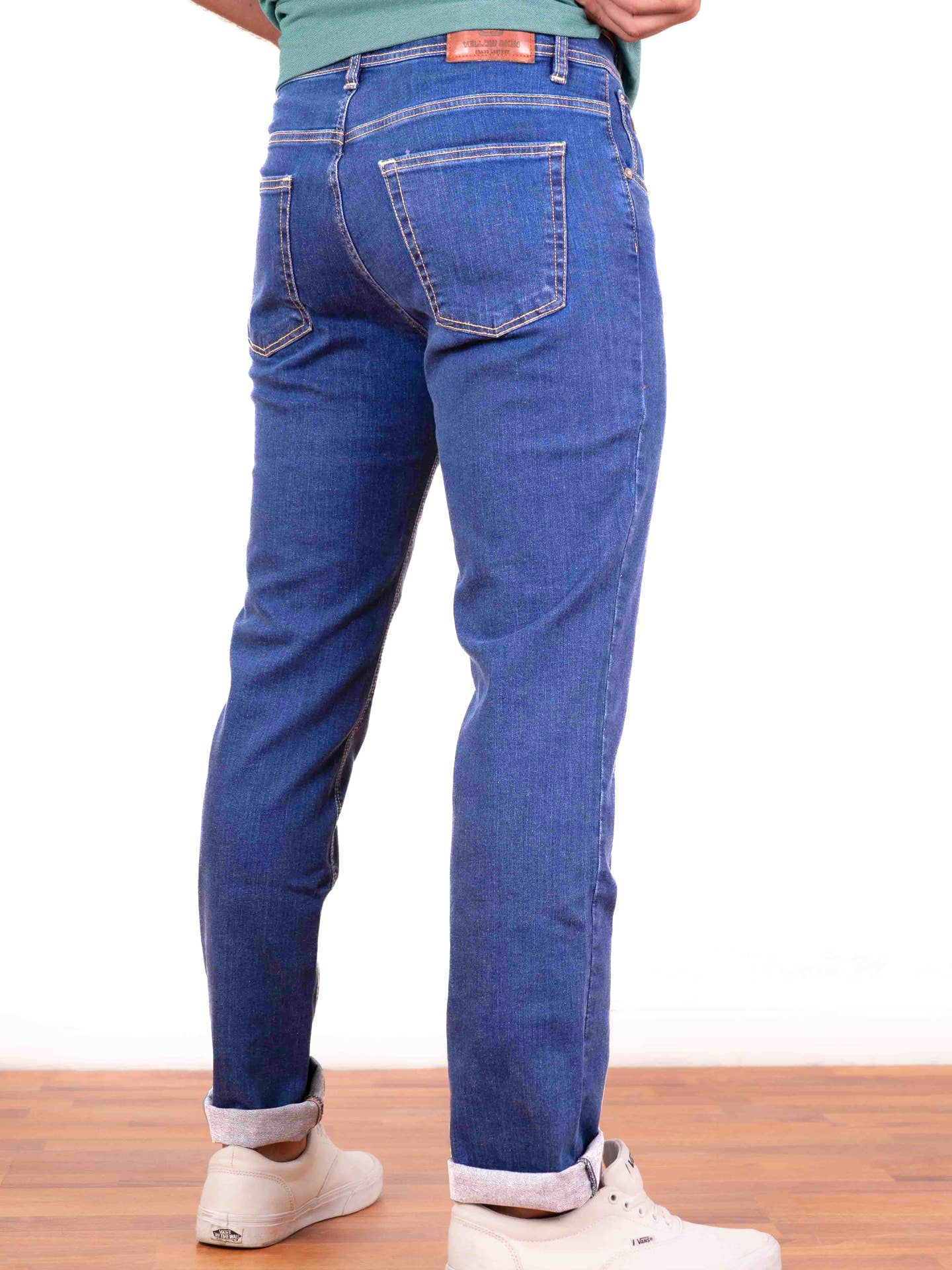 Estas calças jeans de lavagem média são a definição de conforto e estilo casual para o dia a dia. Com um corte straight fit (reto) ligeiramente ajustado, oferecem uma silhueta moderna sem comprometer a liberdade de movimentos, tornando-as ideais para qualquer ocasião descontraída. A bainha pode ser usada dobrada para um look mais urbano e jovem, combinando perfeitamente com ténis brancos ou botas de couro. Fabricadas em algodão resistente com um toque de elasticidade.