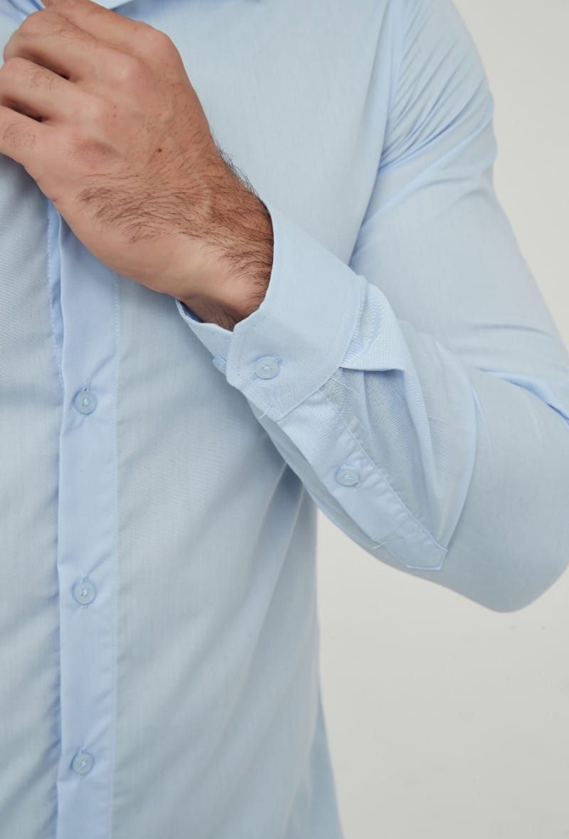 Esta camisa de corte slim fit em azul-celeste é uma peça essencial no guarda-roupa de qualquer homem que valorize um estilo polido, versátil e moderno. Com um design minimalista e sofisticado, é a escolha perfeita tanto para o ambiente de trabalho como para ocasiões sociais que exigem um toque de distinção. A peça destaca-se pelo seu ajuste anatómico, que delineia a silhueta de forma elegante sem comprometer o conforto. O colarinho clássico e estruturado permite o uso impecável com ou sem gravata, enquanto o tecido de alta qualidade oferece um toque suave e uma excelente respirabilidade, mantendo a frescura ao longo de todo o dia.