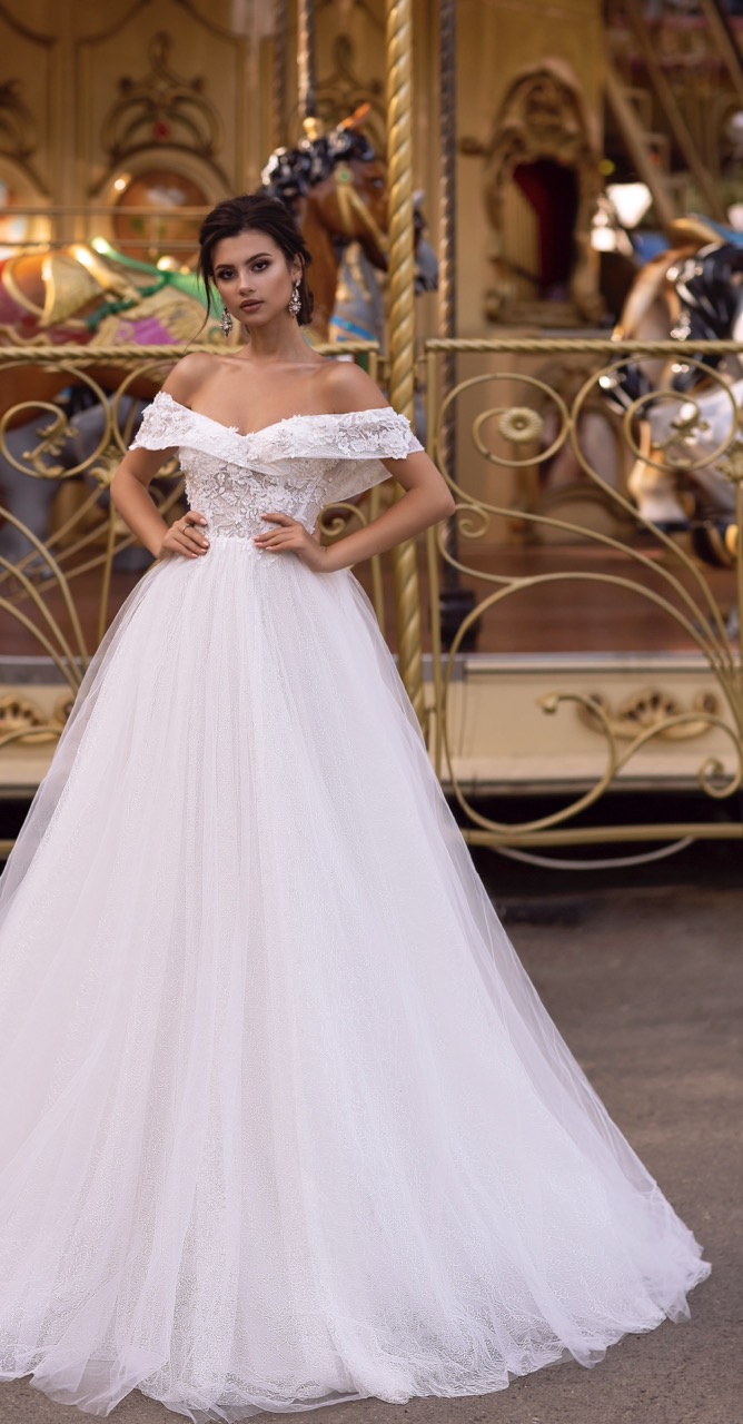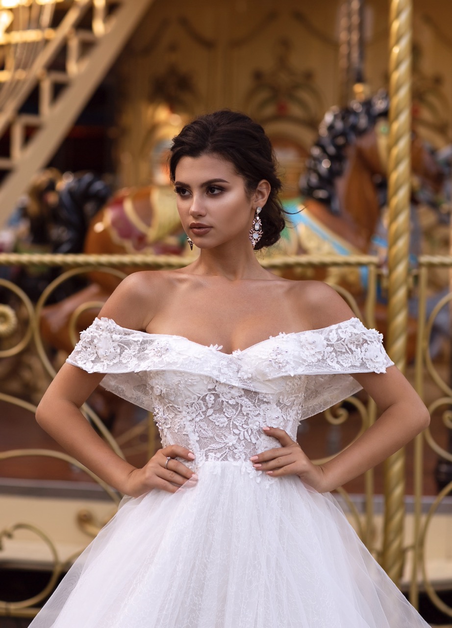 Elegância Romântica com Decote à Barca Este deslumbrante vestido de noiva combina elegância clássica com detalhes modernos que valorizam qualquer noiva. O corpete apresenta um decote à barca, com uma aplicação delicada de renda e flores 3D que se estende pelos ombros, criando um efeito romântico e extremamente feminino. A parte superior ajusta-se ao corpo de forma graciosa, realçando a silhueta com naturalidade. A saia em tule suave com renda é fluido e confere leveza e movimento à peça, proporcionando um caimento etéreo digno de um conto de fadas. O volume é equilibrado, garantindo presença sem perder a delicadeza. Nas costas, o vestido possui atilhos, permitindo um ajuste perfeito ao corpo da noiva e acrescentando um toque de charme artesanal ao design. Ideal para noivas que procuram um look romântico, sofisticado e inesquecível no seu grande dia.
