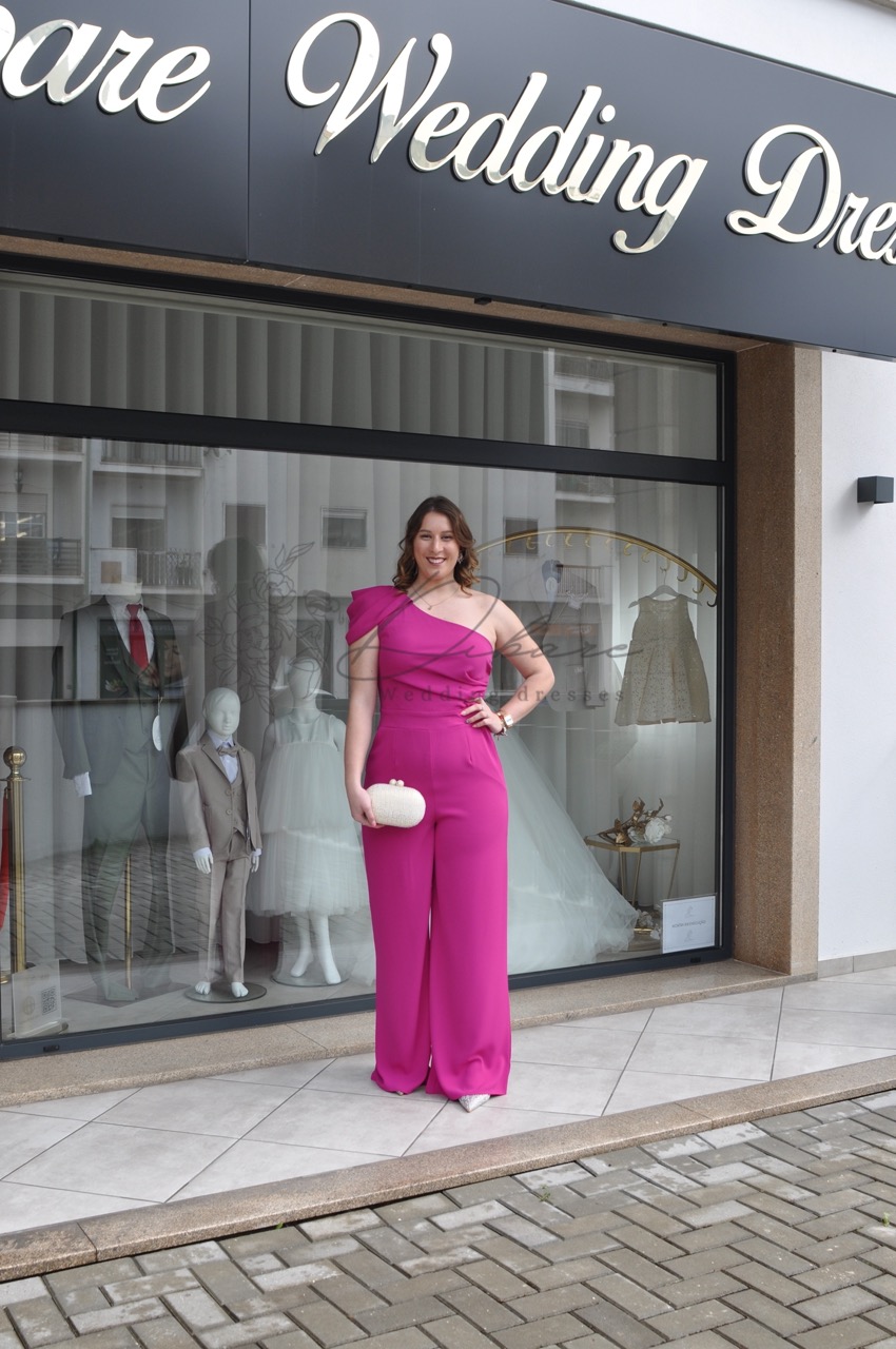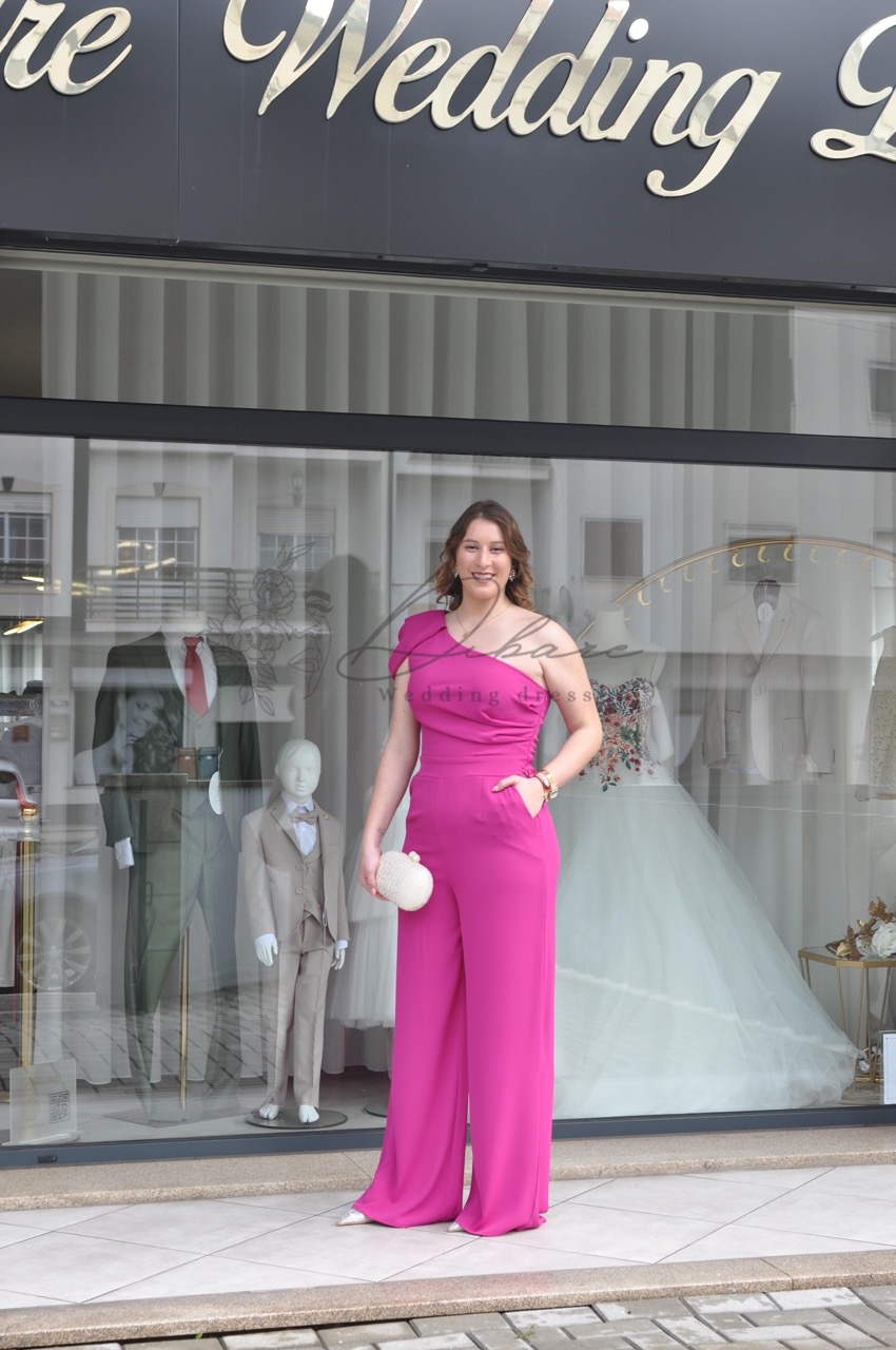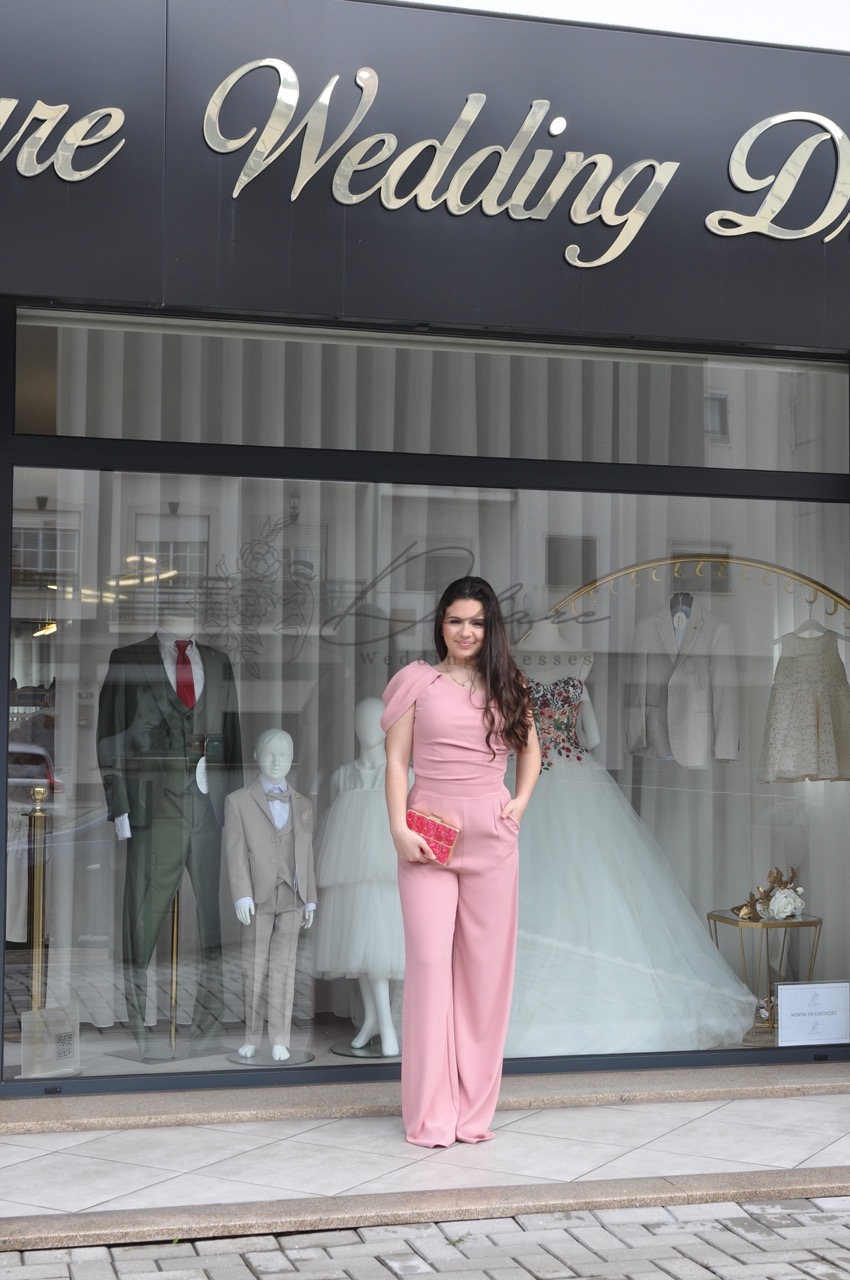 Este sofisticado macacão é a alternativa perfeita aos vestidos, oferecendo um visual chique, moderno e confortável para qualquer evento especial. Confeccionado num tecido leve com um toque suave, este design num tom suave de rosa blush (rosa empoeirado) é extremamente versátil e lisonjeiro. O macacão apresenta um decote redondo/alto e mangas curtas com detalhe drapeado ou levemente estruturado nos ombros, conferindo volume e um toque feminino à parte superior. A cintura é marcada para criar uma silhueta definida, que flui para uma perna larga e fluida. Este corte de perna não só é elegante, como também proporciona um movimento excelente e um conforto incomparável.