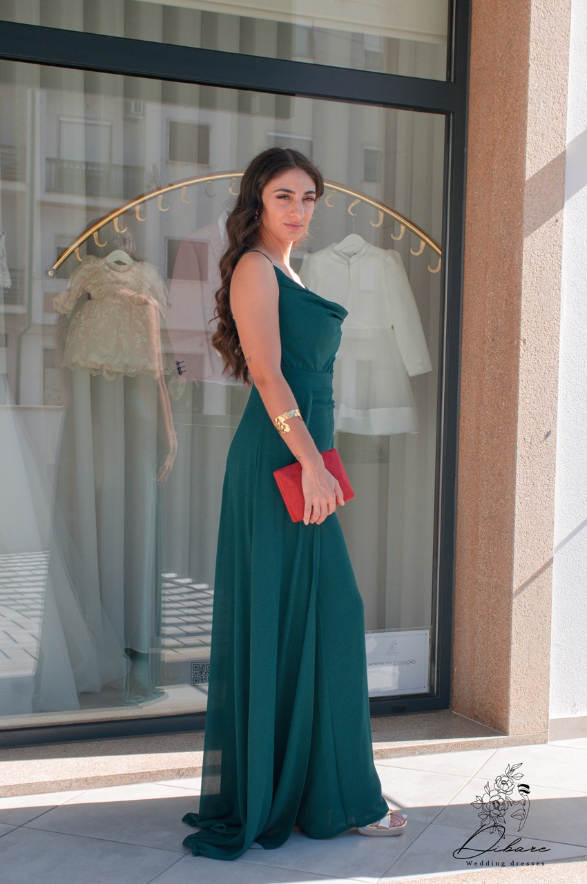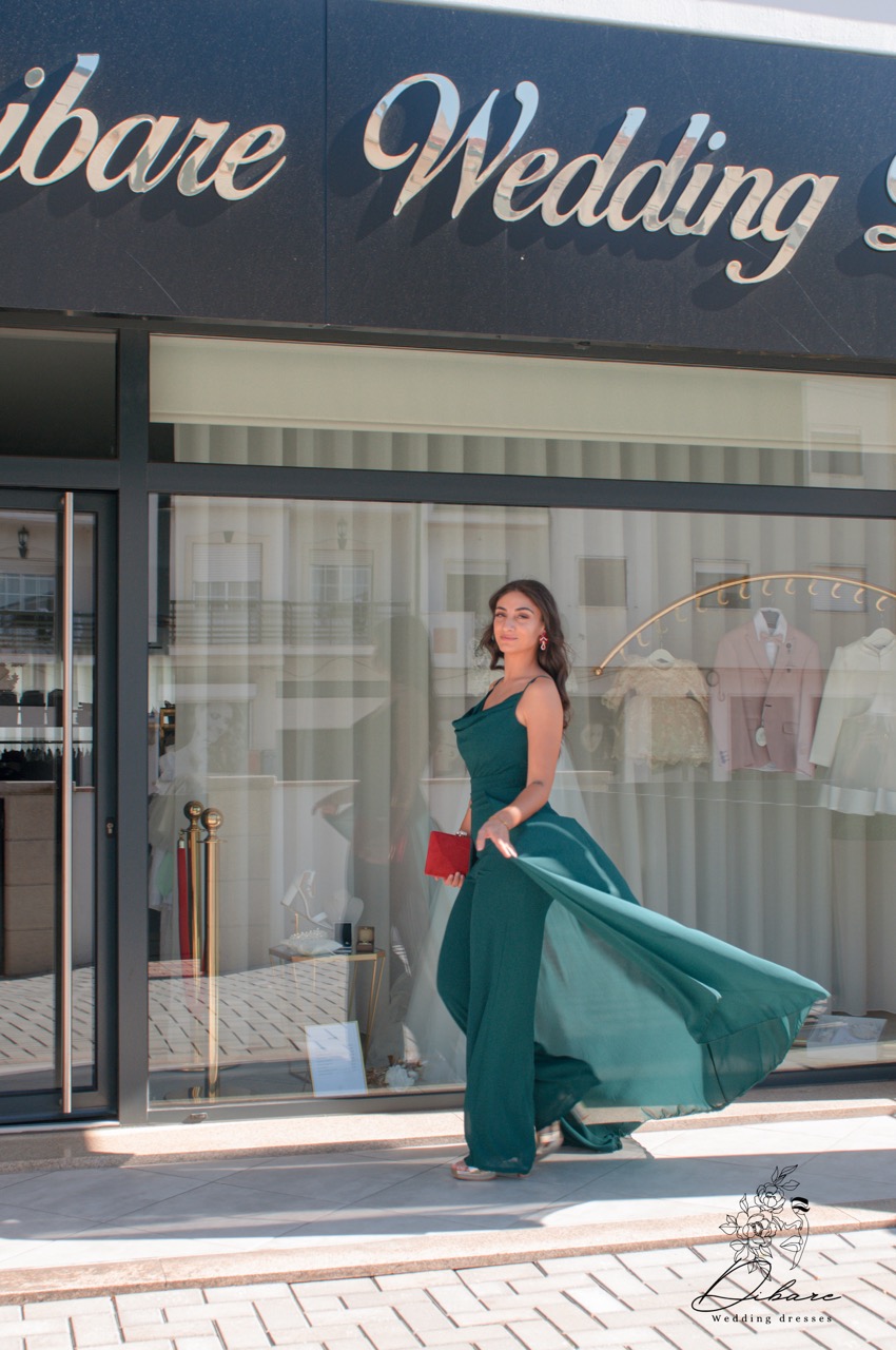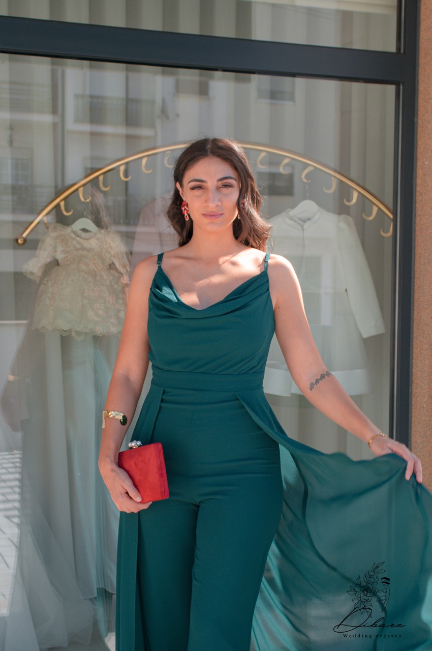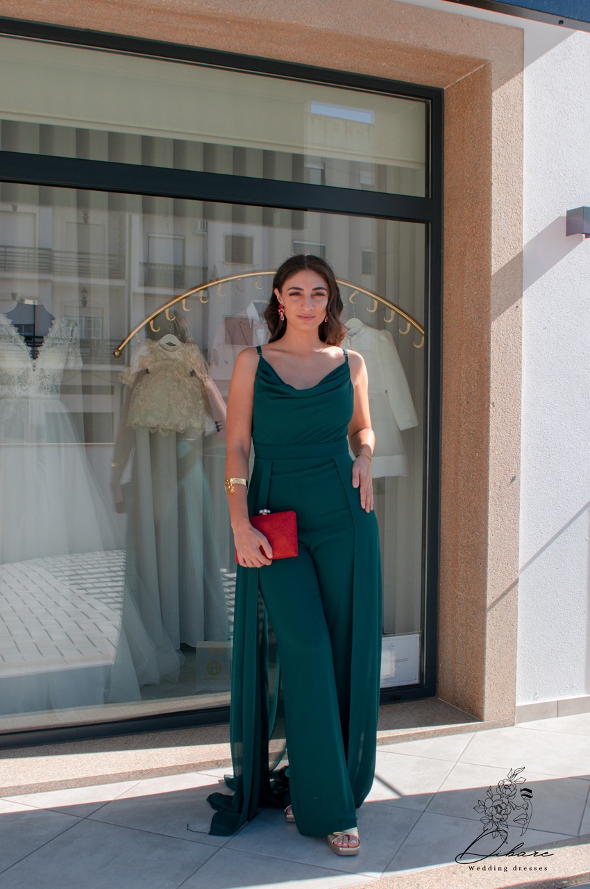 O macacão verde garrafa com efeito de vestido é uma peça inovadora que combina a praticidade de um macacão com a elegância de um vestido. O design fluido e as camadas criam um movimento gracioso, proporcionando um visual sofisticado e feminino. A cor verde garrafa confere profundidade e charme, tornando-o ideal para eventos formais ou ocasiões especiais. Com um ajuste que valoriza a silhueta, esse macacão é perfeito para quem deseja um look único e contemporâneo, sem abrir mão do conforto.