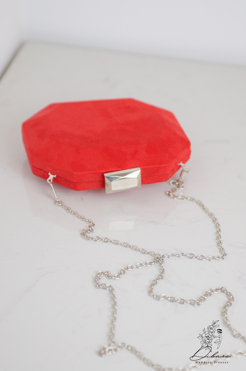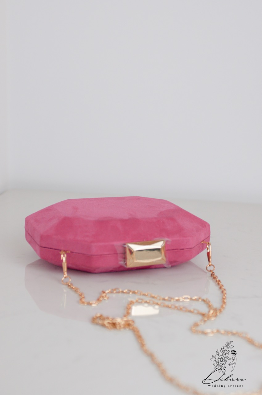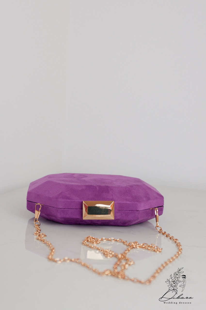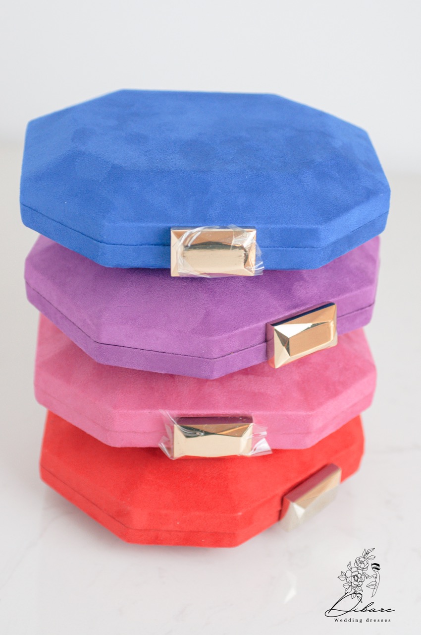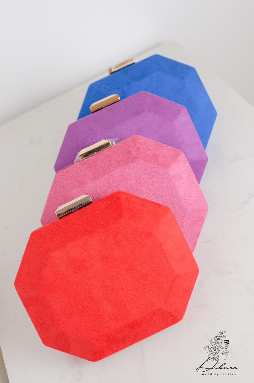 Esta deslumbrante Clutch de Luxo Geométrico é a peça statement perfeita para elevar qualquer look de festa, cocktail ou evento especial. Com um design arrojado e contemporâneo, a sua forma facetada, inspirada num diamante, confere-lhe uma textura única e um brilho subtil. O exterior é revestido num veludo suave e sumptuoso, disponível numa paleta de cores vibrantes e ricas (azul, roxo, rosa e vermelho), permitindo que cada cliente encontre o tom ideal para complementar o seu guarda-roupa. Cada mala é finalizada com um fecho metálico elegante em tom dourado ou prateado (visível na imagem), que não só garante a segurança dos seus pertences, mas também adiciona um toque de glamour sofisticado. Apesar do seu formato compacto, é o tamanho ideal para transportar essenciais.