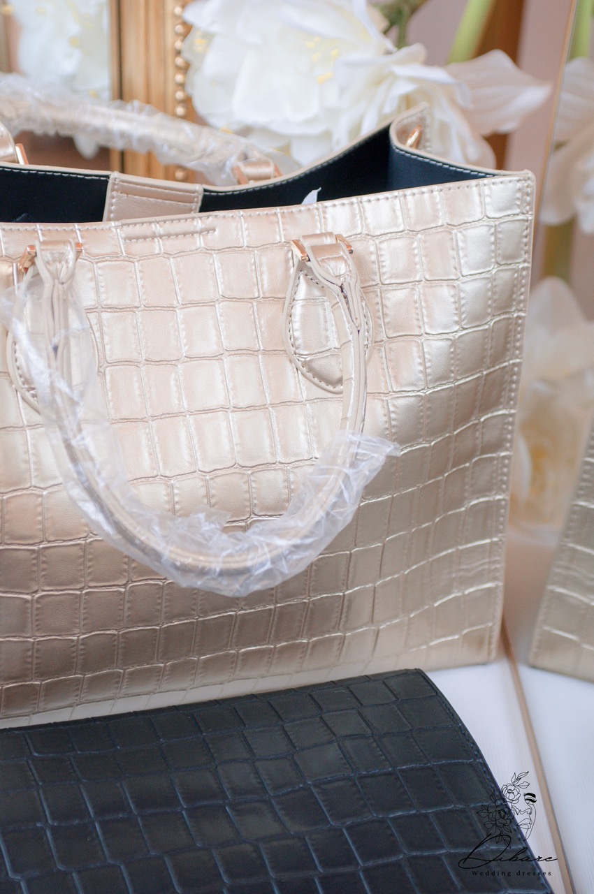 Apresentamos esta deslumbrante mala tote, uma peça que combina sofisticação e funcionalidade para elevar qualquer look. Disponível em dois acabamentos distintos, mas igualmente luxuosos. A versão em dourado metálico, com um acabamento crocante subtil e cintilante, é perfeita para quem deseja adicionar um toque de glamour instantâneo. As suas alças transparentes e robustas oferecem um contraste moderno e arrojado. O interior escuro cria um design chic e prático. Já o modelo em preto mate, com o mesmo padrão croco texturizado, é a definição de elegância intemporal. As suas alças em pele preta e os detalhes metálicos dourados discretos conferem-lhe um ar clássico e versátil, ideal para o dia a dia ou para ocasiões mais formais. Ambas as malas possuem uma estrutura espaçosa e um design aberto, tornando-as ideais para transportar todos os seus essenciais, desde laptops a artigos pessoais, com estilo inigualável.