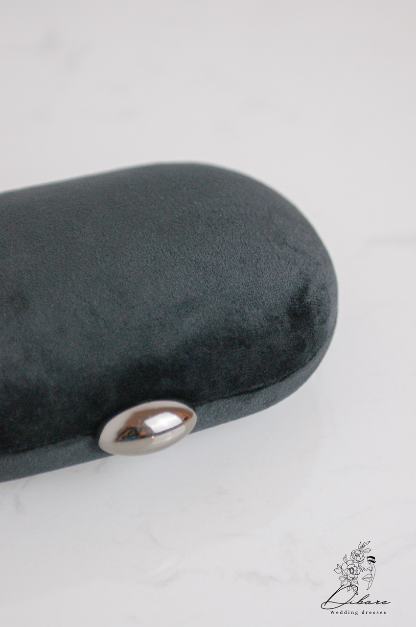 Apresentamos uma pochete que combina sofisticação atemporal com um toque de modernidade. Esta deslumbrante mala de mão apresenta um formato ovalado, compacto e estruturado, ideal para guardar os seus essenciais com segurança e estilo em qualquer evento especial. Revestida num luxuoso material aveludado num tom de cinzento antracite (ou cinzento escuro/carvão), confere uma textura rica e um aspeto sumptuoso que capta a luz de forma subtil. O fecho principal, em metal prateado polido, serve como um ponto focal elegante e garante um acesso fácil e seguro ao interior. Para versatilidade, a pochete é complementada por uma longa alça de corrente em metal de tom escuro/grafite, permitindo-lhe usá-la confortavelmente ao ombro ou a tiracolo, ou retirá-la para transportar a pochete exclusivamente na mão.
