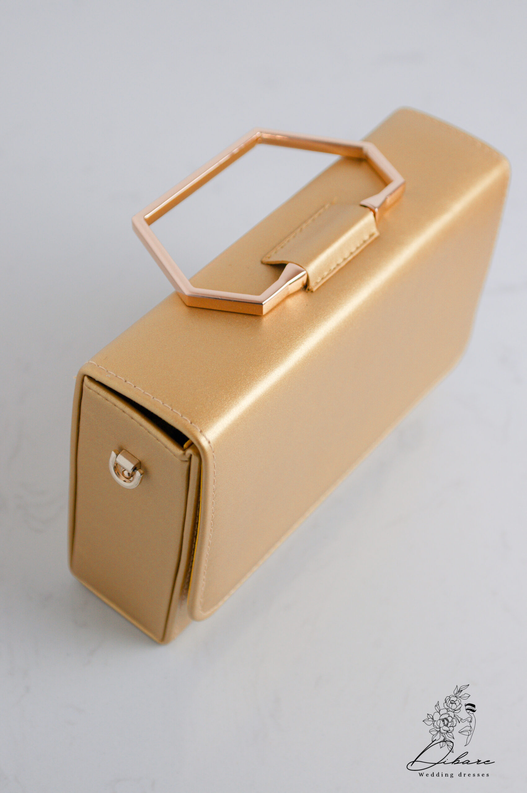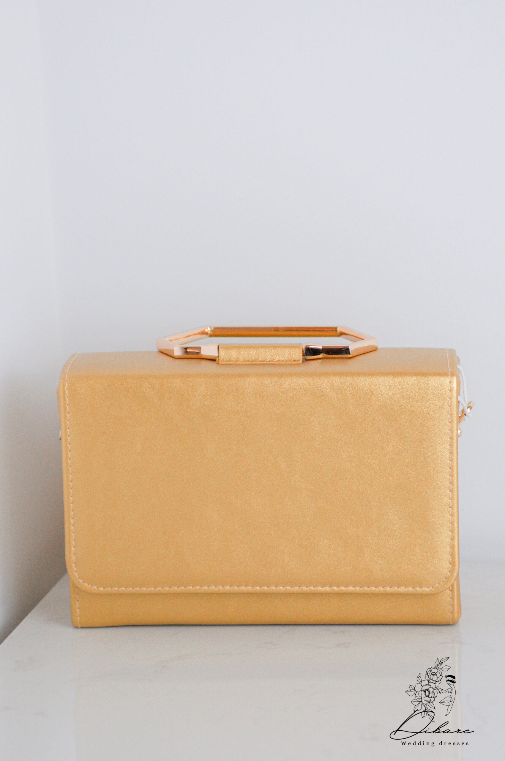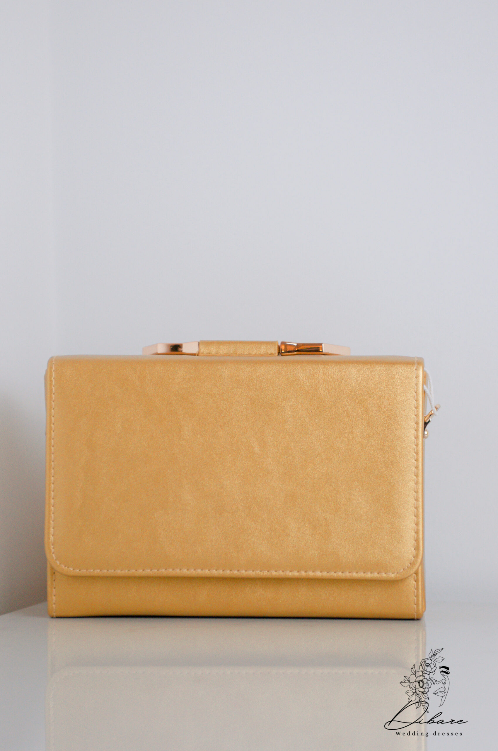 Apresentamos a nossa Mala de Mão Compacta “Midas Touch”, a definição de elegância versátil para qualquer ocasião. Com uma silhueta retangular e estruturada, esta peça é perfeita para quem procura um acessório que alie funcionalidade e glamour. Confeccionada num material com acabamento dourado metalizado de alto brilho, esta mala irradia luz e sofisticação, transformando instantaneamente qualquer outfit. O seu design clean é complementado por uma aba frontal que fecha de forma segura, mantendo os seus pertences organizados. O detalhe distintivo é a sua pega de mão superior em metal, com um delicado tom rose gold ou cobre, que oferece uma forma elegante de transporte. Além disso, a mala é equipada com uma alça lateral removível (visível à direita) para que possa usá-la como uma tiracolo ou crossbody, adaptando-se ao seu estilo.