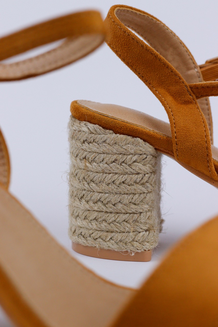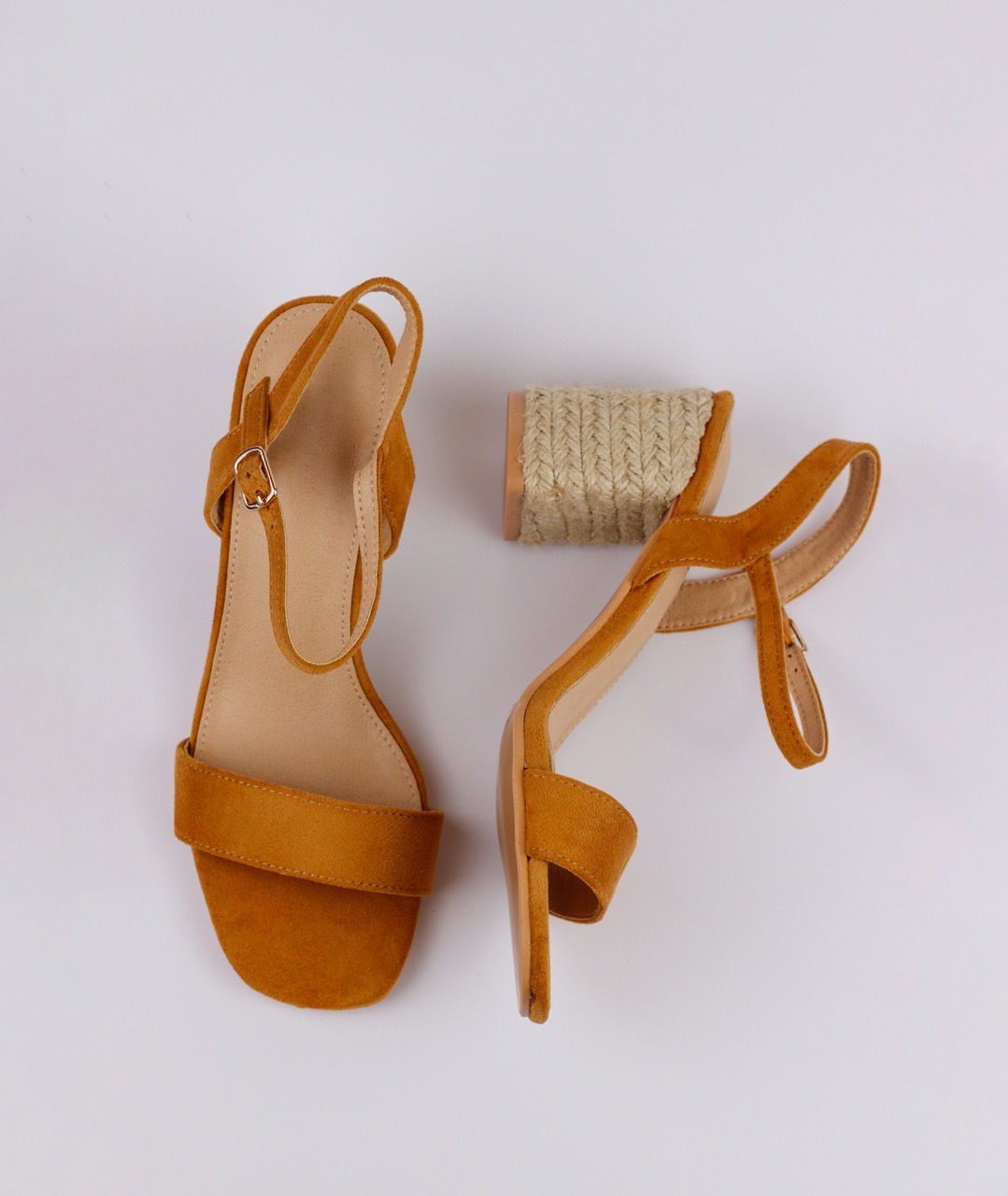 Traga a essência do verão para os seus passos com esta sandália deslumbrante em tom camel vibrante. Com um acabamento luxuoso em textura de camurça, esta peça destaca-se pela sua cor rica e calorosa, capaz de iluminar qualquer conjunto casual ou semiformal com uma elegância descontraída. O grande diferencial deste modelo é o seu salto médio revestido a ráfia entrançada, que confere um toque artesanal e orgânico ao design. Este detalhe não só proporciona uma estética sofisticada, como também oferece a estabilidade e o conforto necessários para um uso prolongado ao longo do dia. A sandália apresenta uma tira frontal larga de corte reto, garantindo um ajuste seguro, e uma pulseira de tornozelo delicada com fivela metálica ajustável. Seja para combinar com um vestido de linho fluido ou com calças de ganga curtas, esta sandália é o acessório versátil que une o conforto natural ao design contemporâneo.