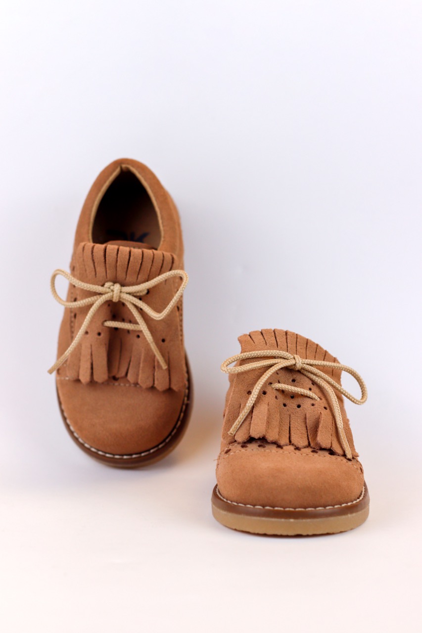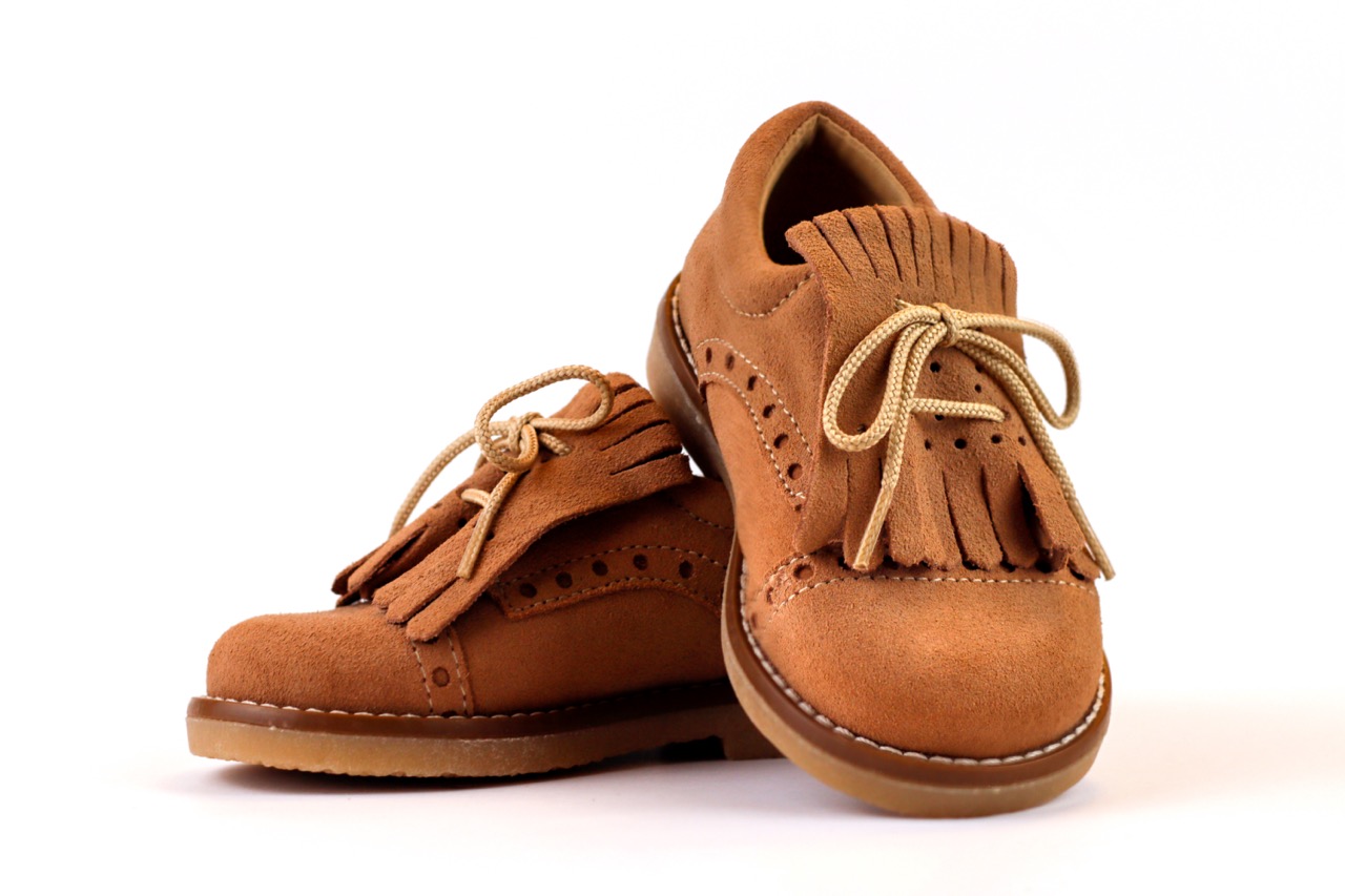 Dê um toque de elegância intemporal aos primeiros passos com o Sapato de Criança Little Explorer. Este modelo, de inspiração clássica, foi desenhado para aliar a durabilidade necessária às brincadeiras diárias com um estilo sofisticado que brilha em qualquer ocasião especial, desde batizados a festas de família. Confeccionado num material de toque aveludado (camurça) num tom camel quente e versátil, o sapato destaca-se pelos seus detalhes artesanais. A parte superior apresenta uma elegante pala de franjas sobrepostas e perfurações delicadas no estilo brogue, conferindo um aspeto rústico e chique que nunca passa de moda.