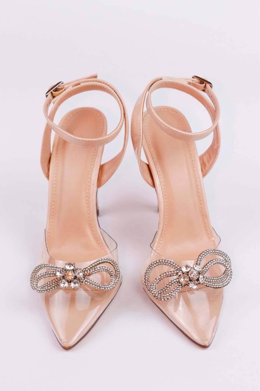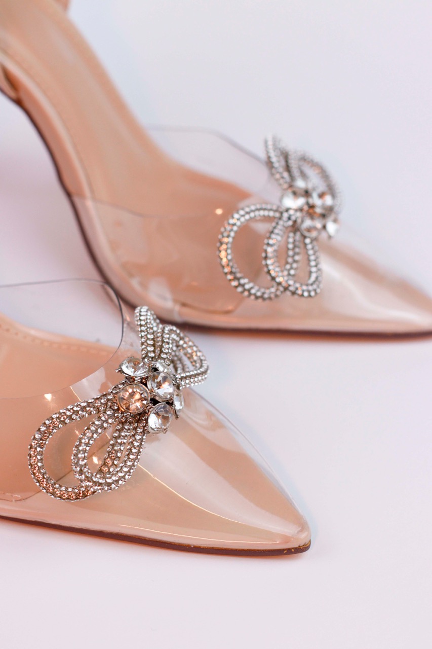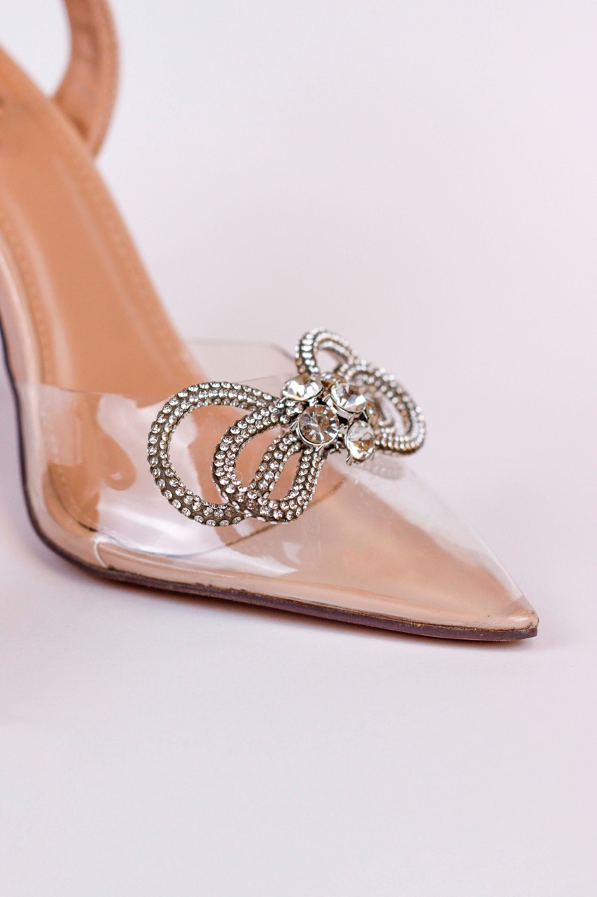 Eleve o seu visual de festa com este sapato de salto agulha que combina a modernidade do design transparente com o luxo clássico dos detalhes em cristal. Este modelo foi desenhado para a mulher que não tem medo de brilhar e procura uma peça que alongue a silhueta de forma elegante e sofisticada. A parte frontal é confeccionada em material vinil transparente de alta qualidade, criando um efeito visual que é tendência absoluta e ajuda a alongar a perna. O grande destaque recai sobre o laço escultural adornado com cristais brilhantes na biqueira pontiaguda, conferindo um toque de alta costura e feminilidade extrema.