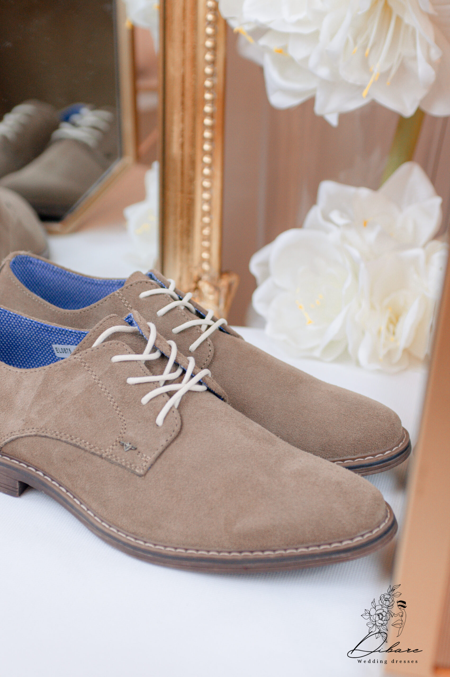 Este sapato em camurça é a definição de elegância descontraída, perfeito para o homem que valoriza um visual moderno sem abdicar do conforto clássico. Com uma tonalidade bege acinzentado extremamente versátil, este modelo destaca-se pela sua textura suave e pelo acabamento mate, que confere uma sofisticação discreta a qualquer conjunto. O design é enriquecido por detalhes contrastantes que marcam a diferença: os atacadores em creme e o forro interior num azul vibrante conferem um toque de personalidade e frescura ao sapato. A sua construção de quartos abertos facilita o ajuste ao pé, enquanto a sola de borracha flexível, com pesponto visível em toda a volta, garante não só durabilidade, mas também um caminhar leve e seguro.
