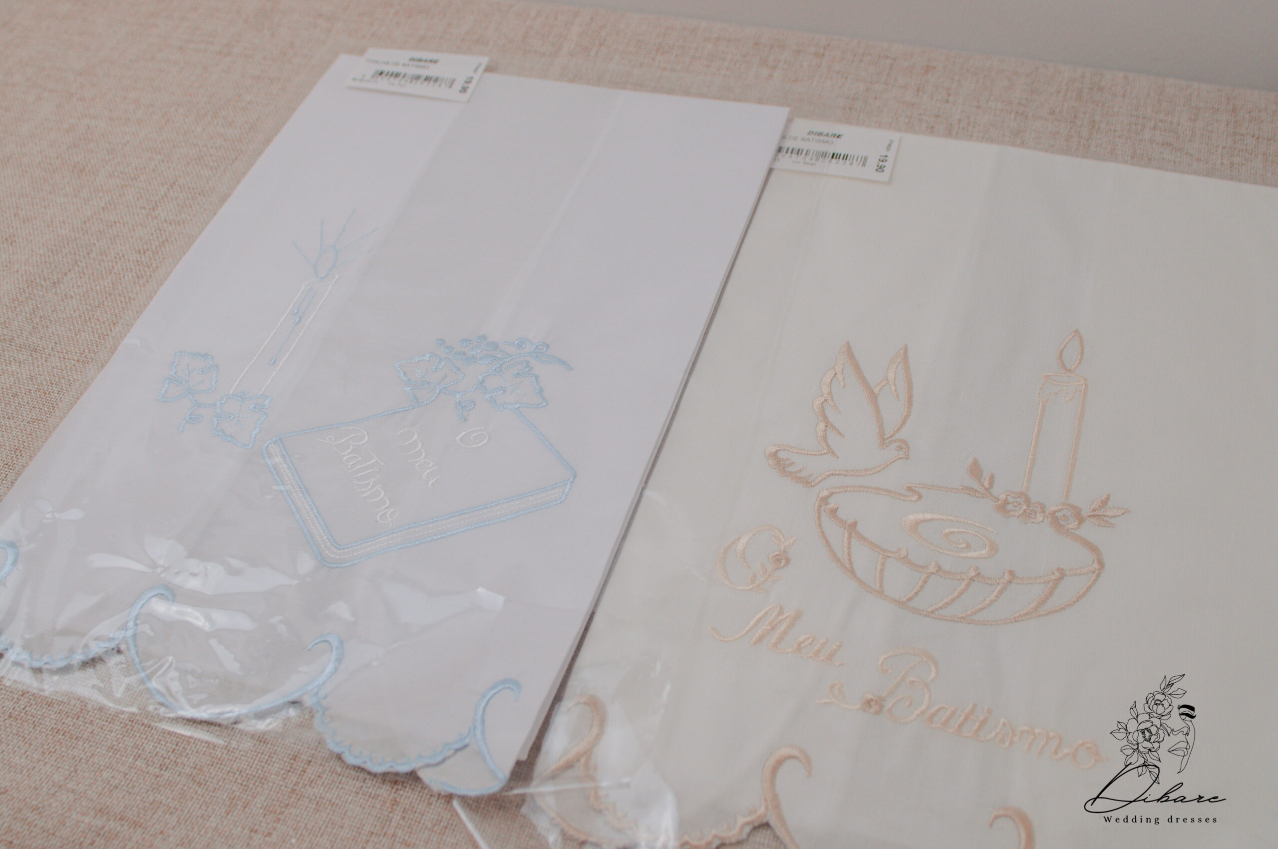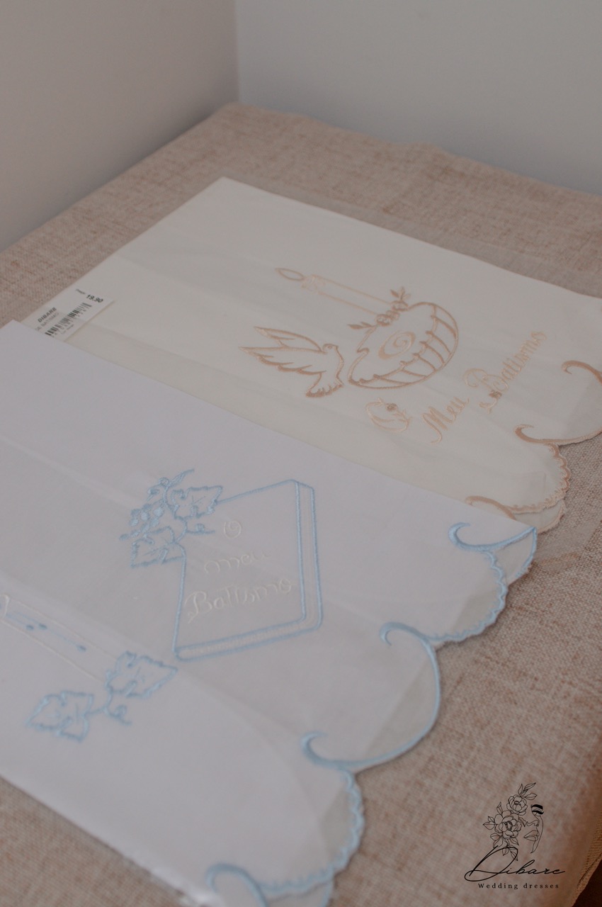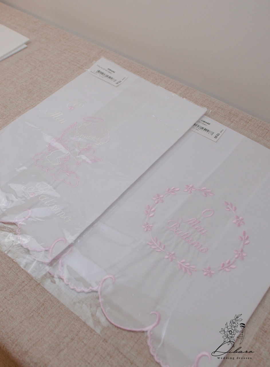 Crie uma recordação única e duradoura do batizado do seu filho(a) com as nossas Toalhas de Batismo. Cada toalha é bordada com requinte e pode ser personalizada com o nome e data do evento. Disponíveis em várias cores para complementar a vestimenta e a decoração da cerimónia. Um presente perfeito e uma herança de família.