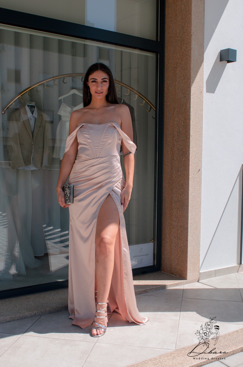 O Vestido Aurora é a materialização do glamour hollywoodiano. Com um tecido acetinado que desliza sobre o corpo e um elegante decote “à barca” estruturado, este vestido é a definição de sofisticação. O corpete drapeado e a racha lateral alta combinam o charme simples com a sedução. Perfeito para bailes de gala e convidadas que desejam um look luxuoso.