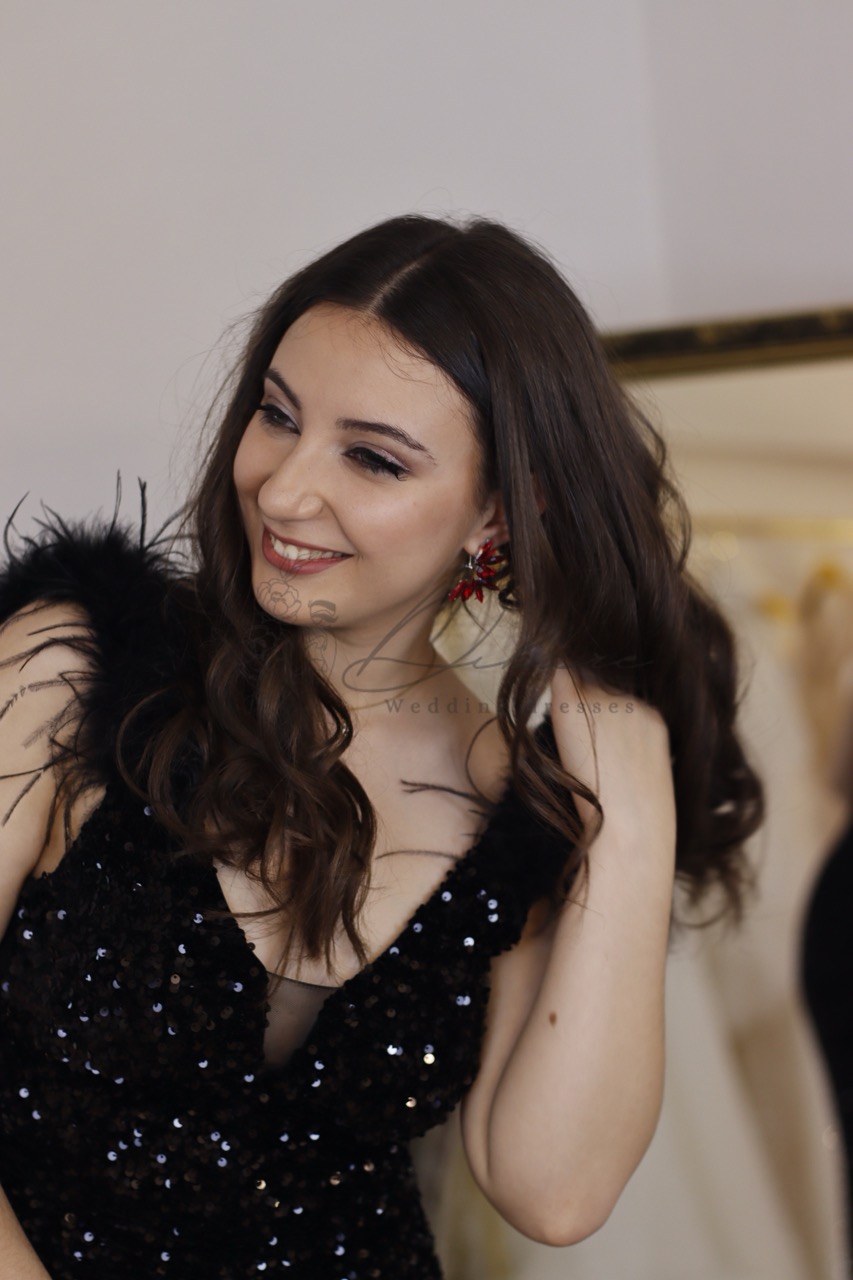 Vestido preto de lantejoulas com um toque de brilho e glamour