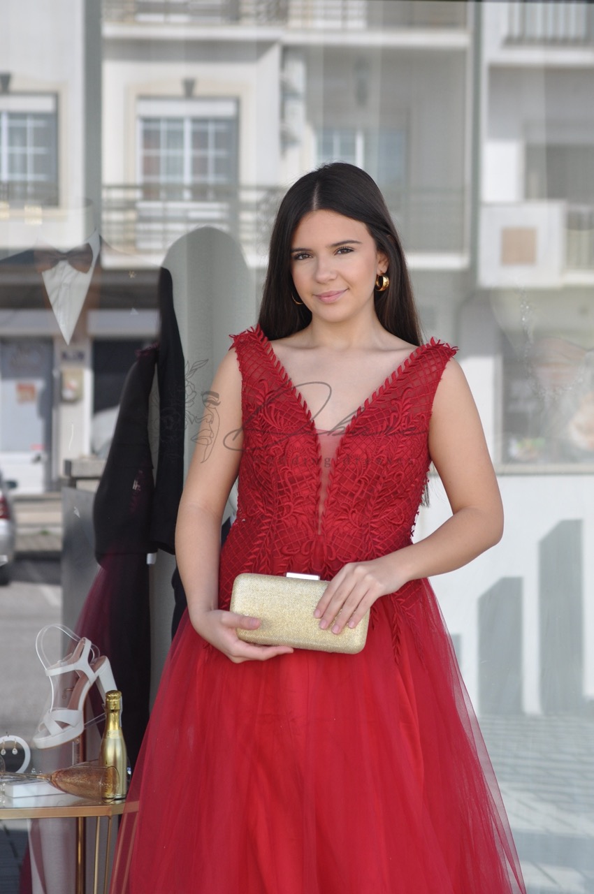 Este modelo é a escolha ideal para bailes de finalistas, galas ou convidadas de casamentos noturnos que não dispensam o clássico vermelho.