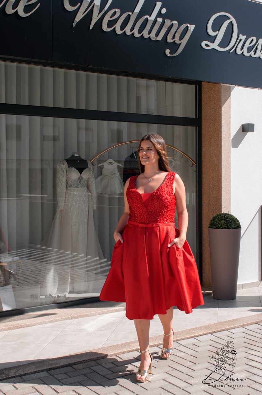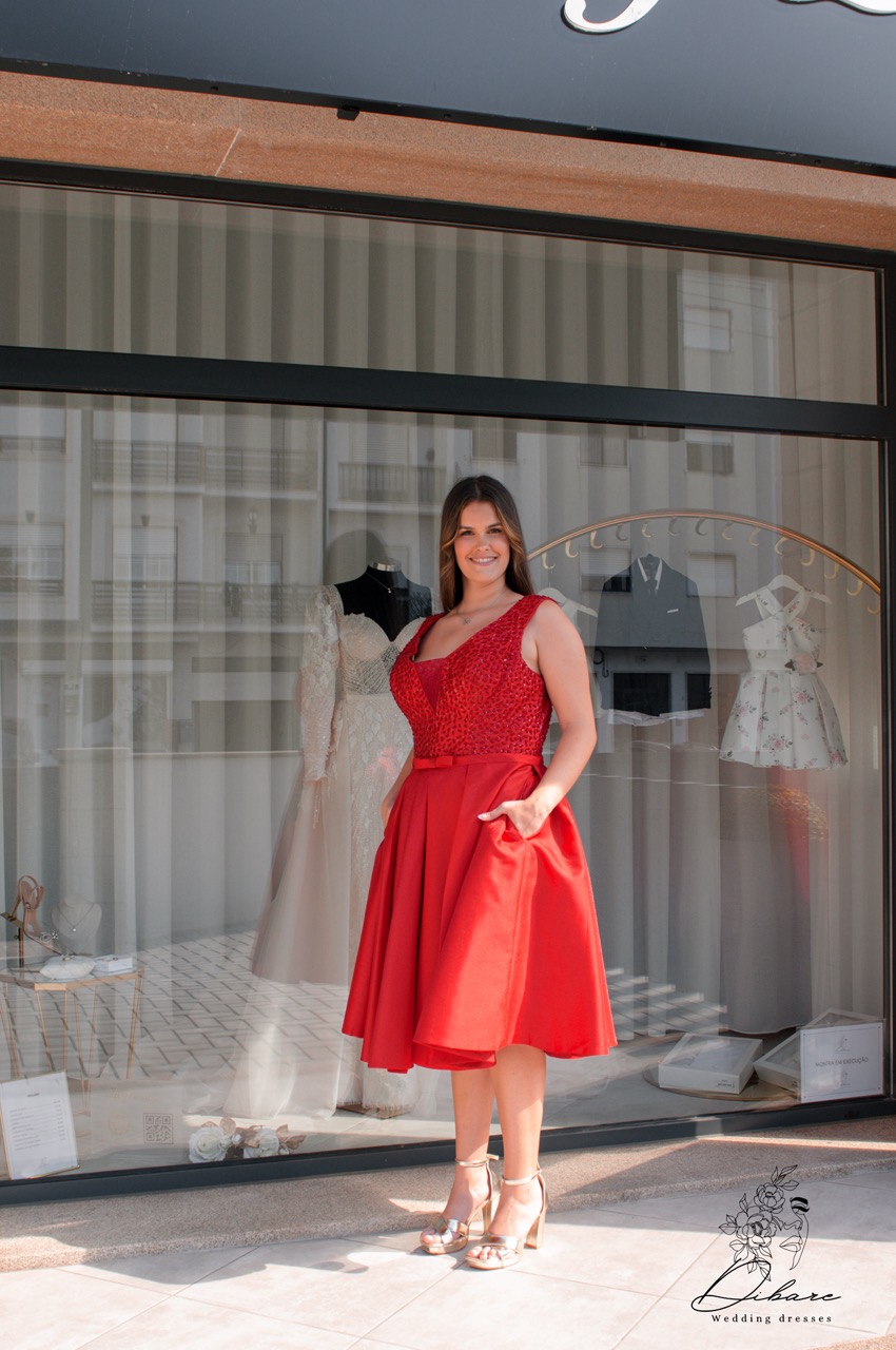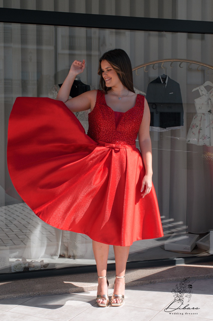 Vestido curto vermelho com um visual sofisticado e marcante