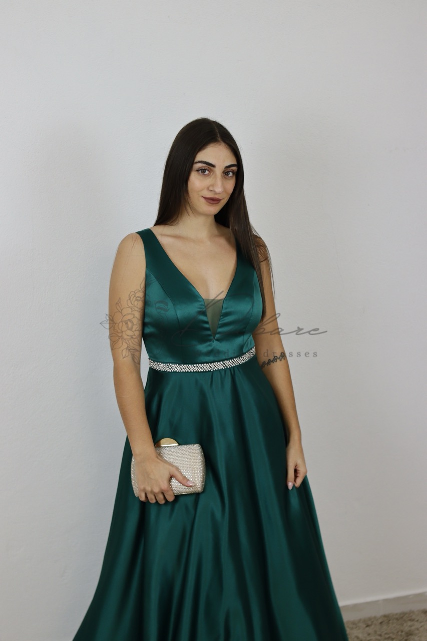 Este vestido é a escolha ideal para quem busca um equilíbrio entre glamour e sofisticação. Com um decote em V que valoriza o colo de maneira elegante, ele é realçado por um cinto de brilhantes que adiciona um toque de brilho e luxo. Disponível em sofisticadas cores verde ou preto, o vestido destaca-se por sua versatilidade e estilo atemporal. O cinto cintilante não só define a silhueta, mas também eleva o visual a um nível de sofisticação superior, tornando-o perfeito para eventos especiais onde deseja brilhar com confiança.