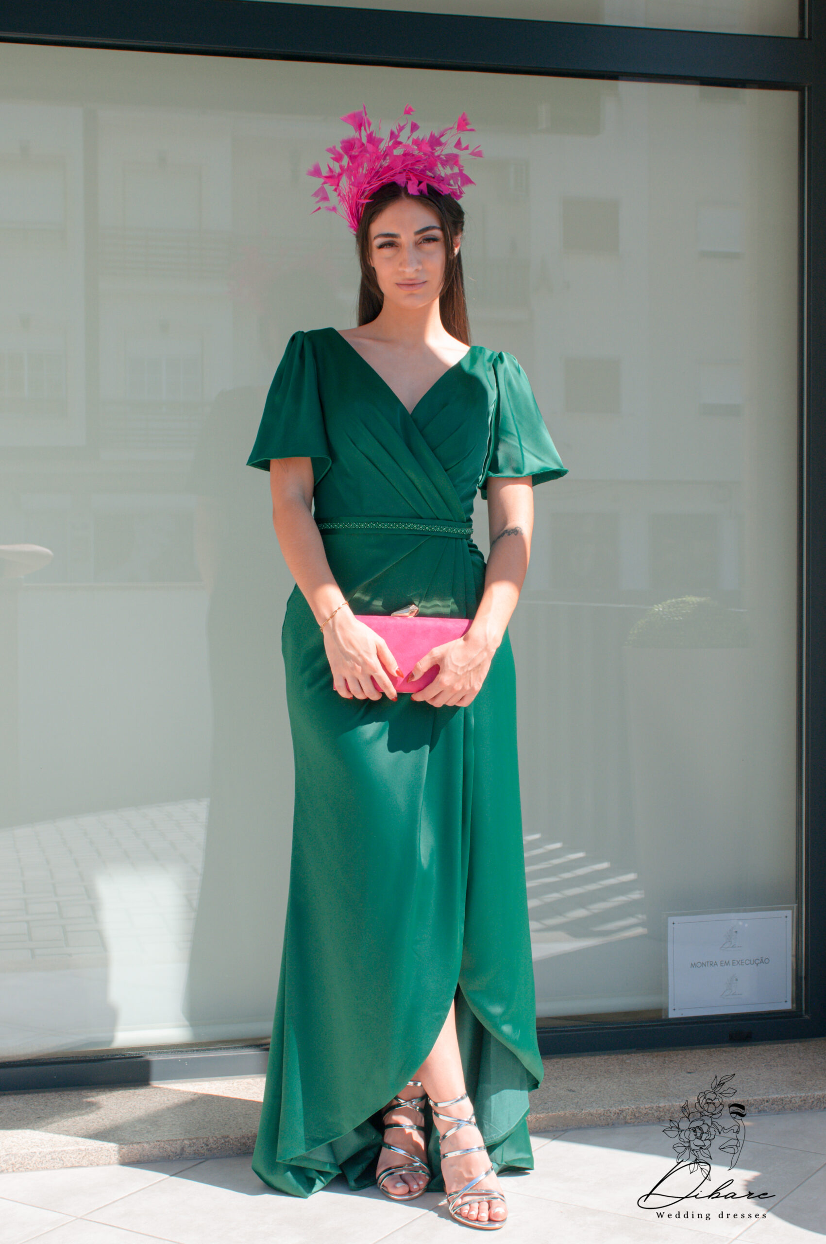 Deslumbre com o Vestido Copenhaga, uma peça fluida e majestosa. No seu vibrante tom verde esmeralda, o vestido destaca-se pelo decote transpassado em V e as delicadas mangas borboleta que caem suavemente. A saia estilo envelope com bainha assimétrica e a cintura marcada garantem uma silhueta feminina e um toque de drama. Perfeito para casamentos de gala e eventos sofisticados.
