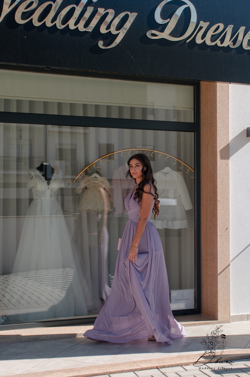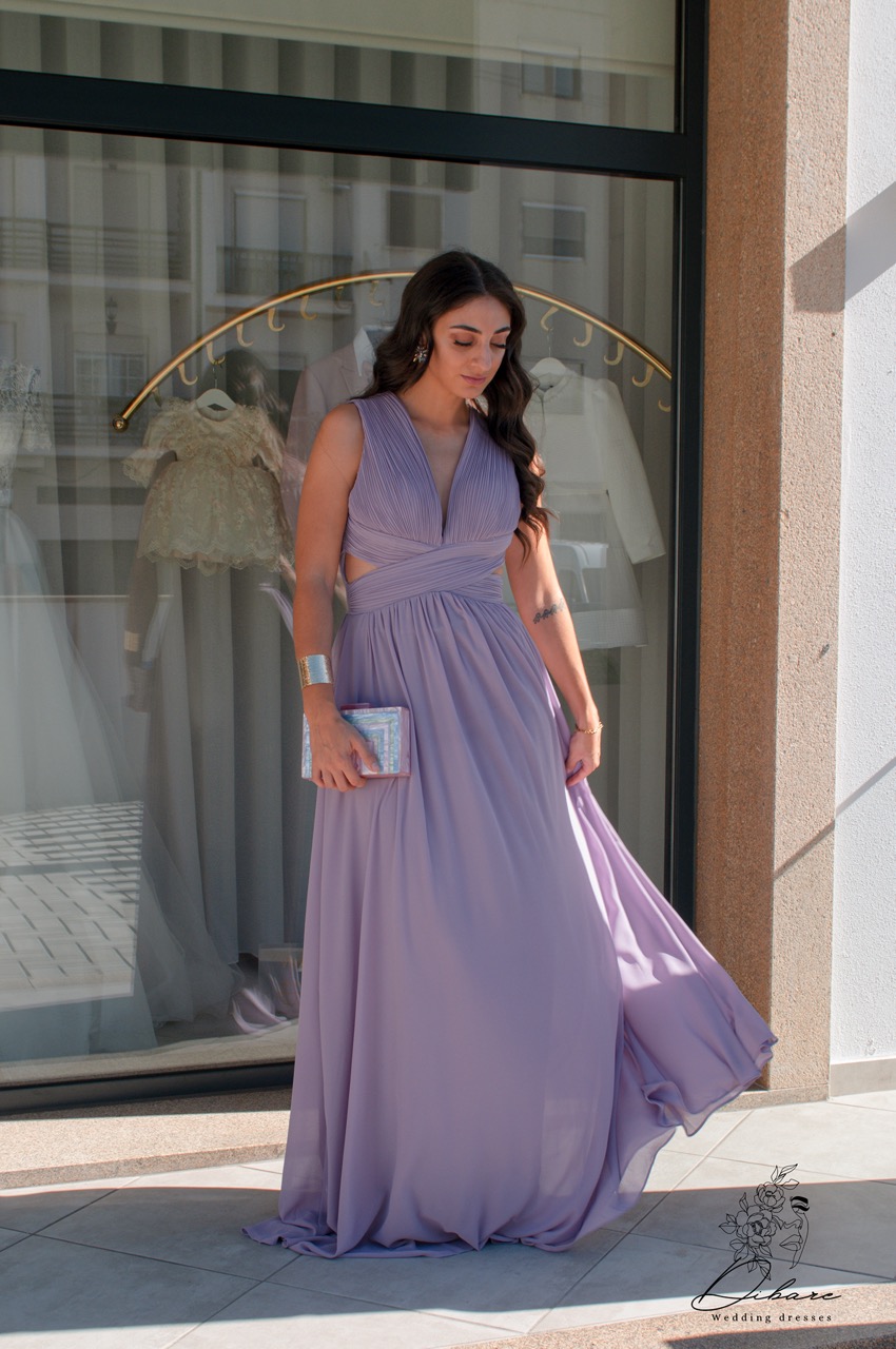 Vestido longo em lavanda, perfeito para damas de honra ou convidadas de casamento
