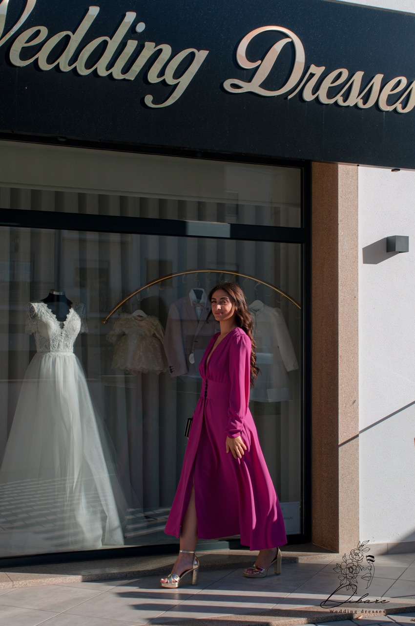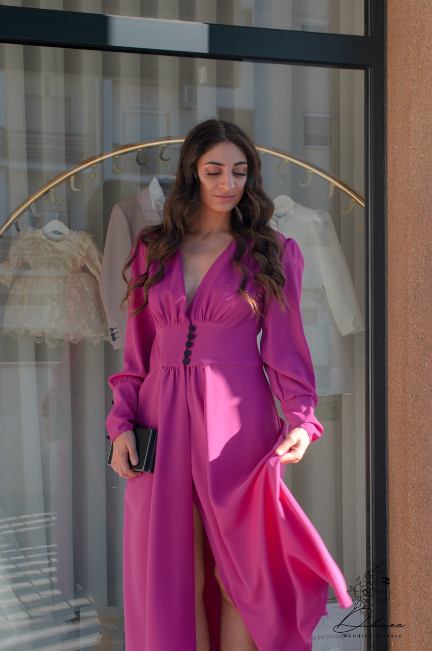 Este vestido midi rodado com manga é uma peça elegante e versátil