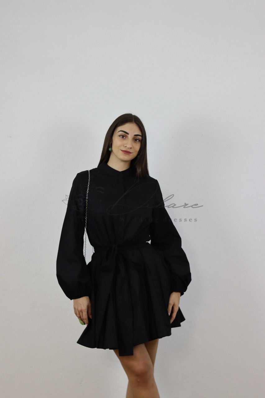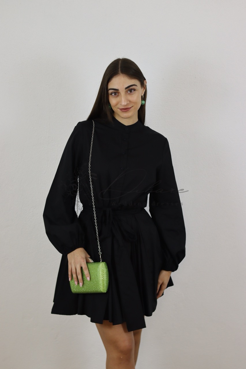 Um vestido preto de manga comprida tipo camisa é uma peça clássica e versátil, perfeita para diversas ocasiões. Com seu design inspirado em camisas, ele apresenta uma silhueta estruturada e botões frontais, que conferem um toque casual e sofisticado ao mesmo tempo. O cinto acentua a cintura, valorizando a forma do corpo e proporcionando um acabamento elegante. Essa combinação de elementos torna o vestido ideal para um look profissional, um encontro social ou até mesmo um evento mais descontraído. A cor preta adiciona um toque de sofisticação e facilidade de combinação com acessórios.