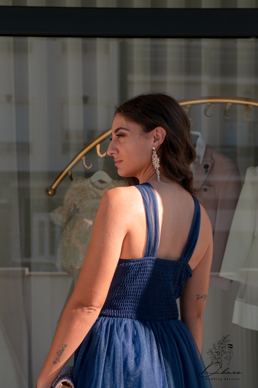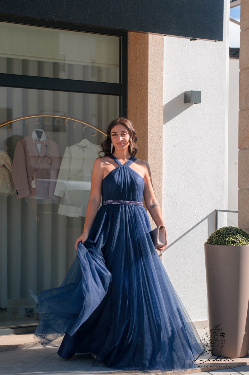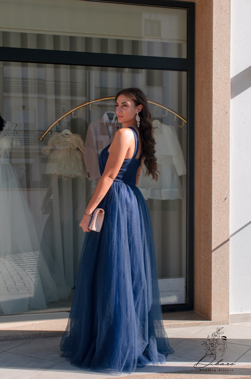 O vestido comprido nas cores azul e cinza, com detalhes em tule e pérolas na cintura, é uma peça sofisticada e encantadora. O tule traz leveza e movimento ao design, criando um efeito etéreo, enquanto as pérolas na cintura adicionam um toque de luxo e delicadeza, realçando a silhueta. As cores azul e cinza oferecem um visual elegante e refinado, ideal para eventos formais, como casamentos ou galas. Este vestido combina feminilidade e sofisticação, proporcionando um look deslumbrante e memorável.
