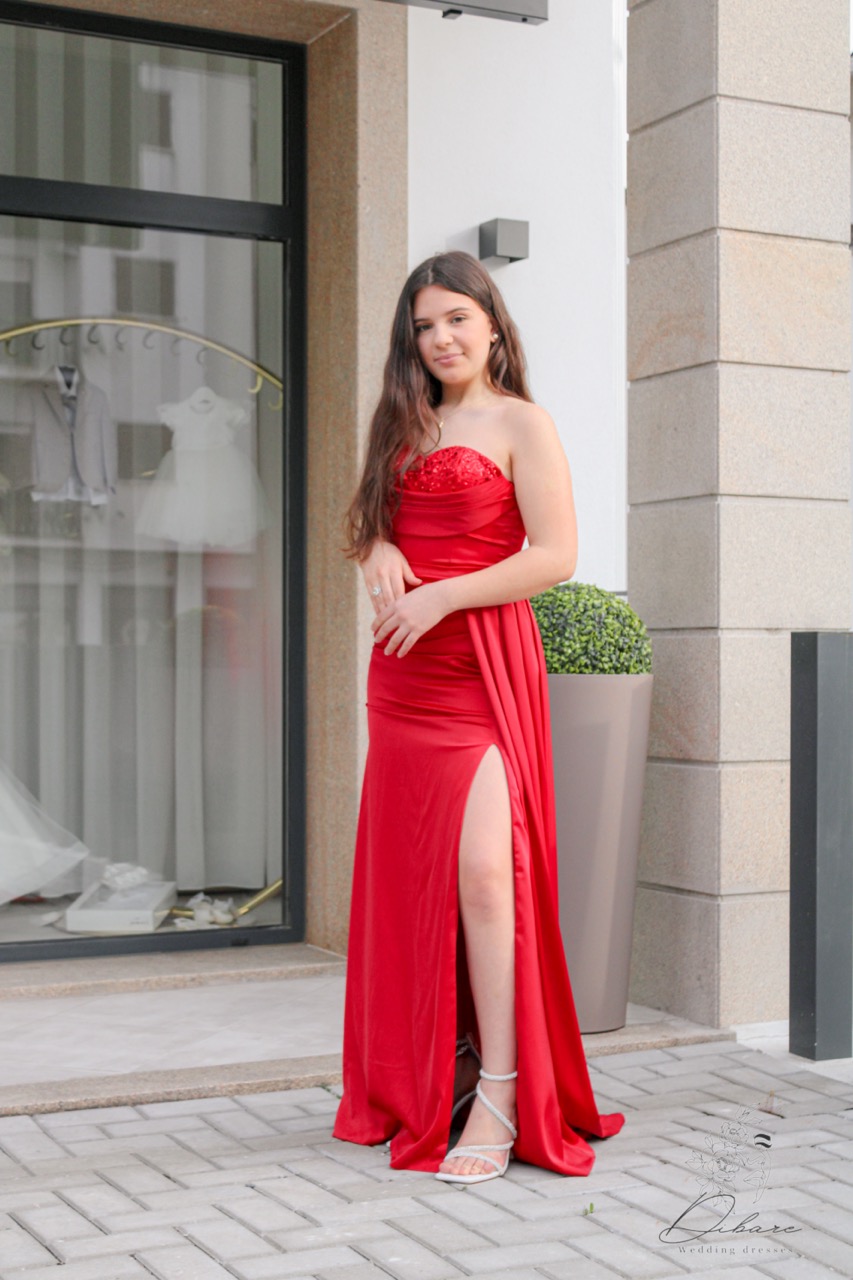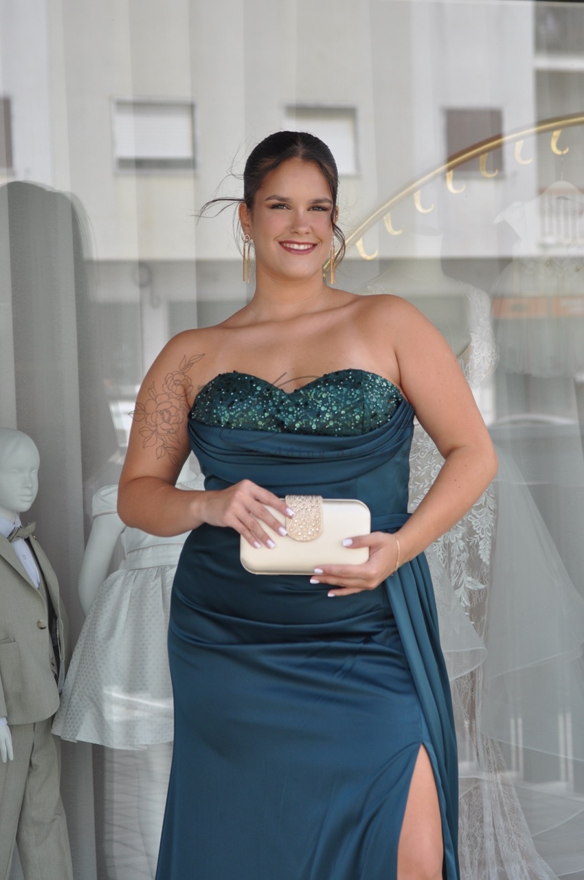 Um vestido sereia confeccionado em um tecido leve e fluido, disponível nas cores vermelho, rosa, azul escuro e verde garrafa. O corpete é delicadamente adornado com leves lantejoulas, que adicionam um brilho subtil e sofisticado sem sobrecarregar o design. O corte sereia ajusta-se graciosamente ao corpo, destacando as curvas com elegância, enquanto a saia se abre suavemente a partir dos joelhos, trazendo movimento e leveza. Ideal para ocasiões glamourosas, o vestido une sensualidade e delicadeza com um toque refinado de brilho.
