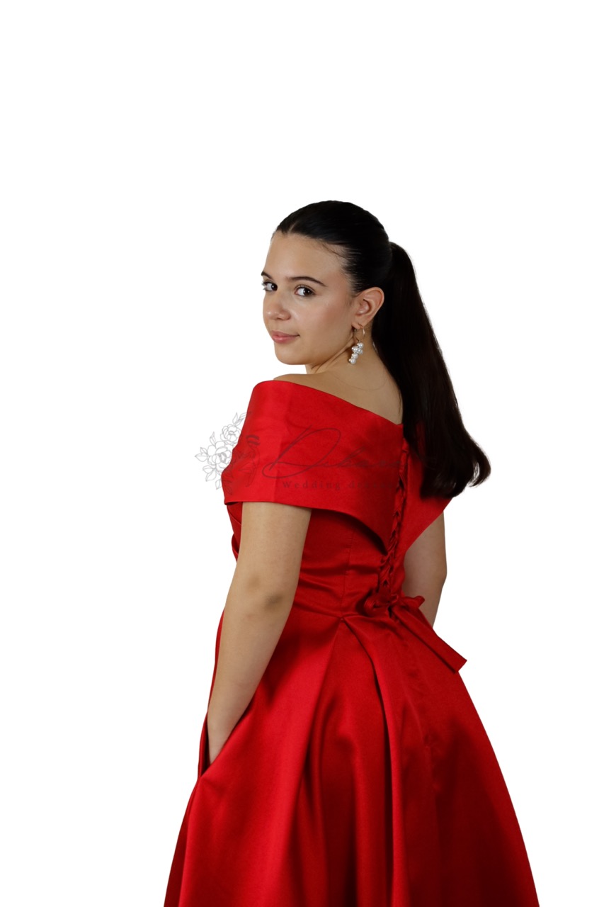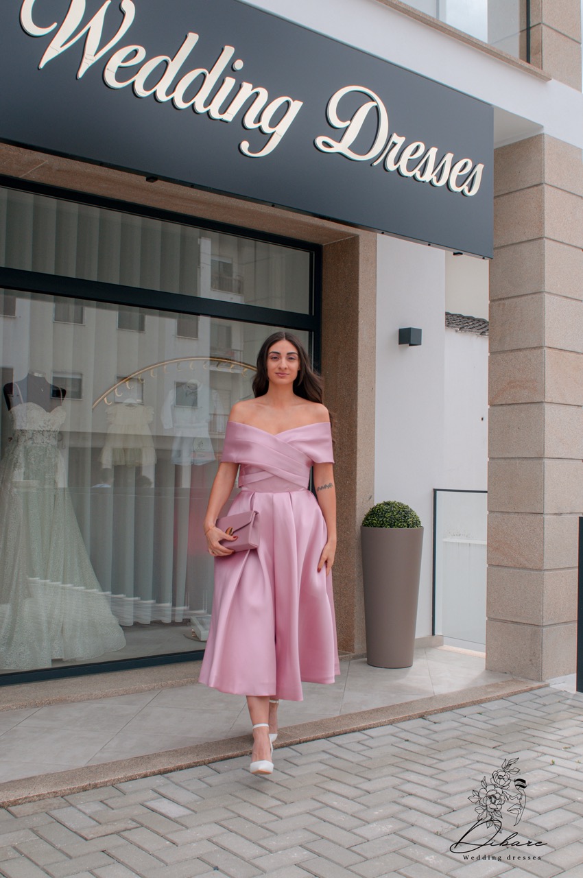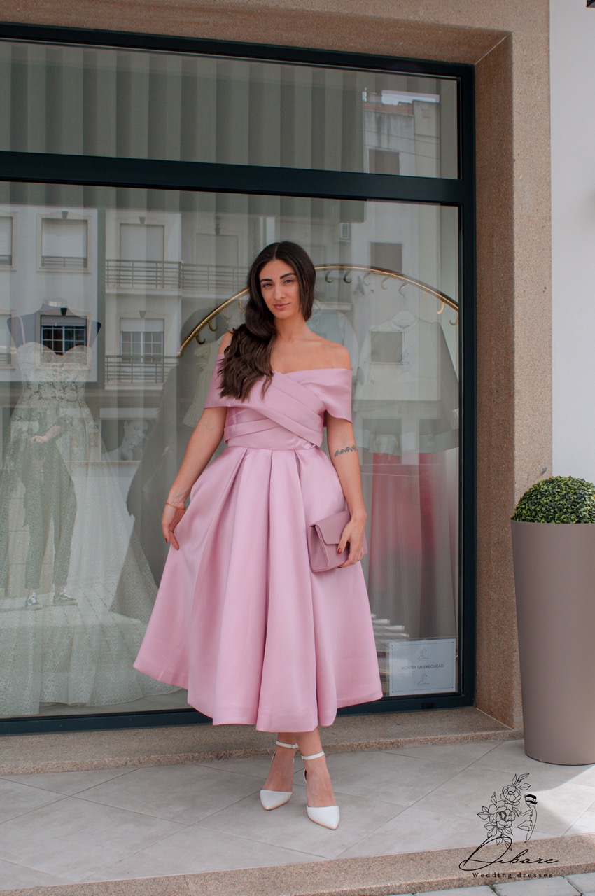 Este encantador vestido midi em tom vermelho é a expressão máxima da elegância clássica com um toque contemporâneo. Confeccionado num tecido estruturado de cetim com brilho subtil, a peça destaca-se pelo seu sofisticado decote à barco com drapeado cruzado no peito, que envolve os ombros de forma graciosa e feminina. A cintura é definida, dando lugar a uma saia de corte em “A” com volume equilibrado, que termina elegantemente abaixo do joelho. Este design não só oferece uma silhueta intemporal e lisonjeira, como também garante liberdade de movimento e conforto.