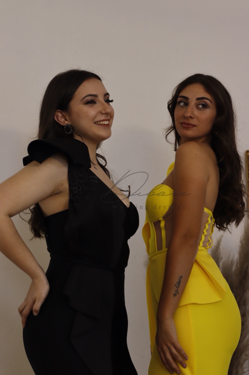Confeccionado num tecido liso e vibrante, confere energia e sofisticação, garantindo que o vestido será o centro das atenções.