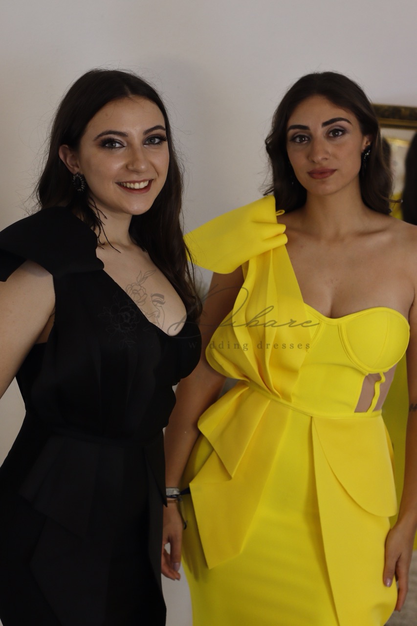 Este deslumbrante vestido amarelo é uma verdadeira peça, perfeita para eventos onde se pretende brilhar com elegância e modernidade. O design arrojado apresenta um corpete justo e estruturado de corte bustier, realçado por um decote assimétrico de um só ombro. O ombro é adornado com um grande laço ou detalhe drapeado escultural que adiciona volume dramático e um toque de alta costura. A peça destaca-se pela sua silhueta midi ajustada e pela aplicação estratégica de painéis, que conferem uma textura geométrica e uma construção arquitetônica à anca e cintura. Estes elementos estruturais criam um efeito visualmente impactante, definindo e alongando a figura.