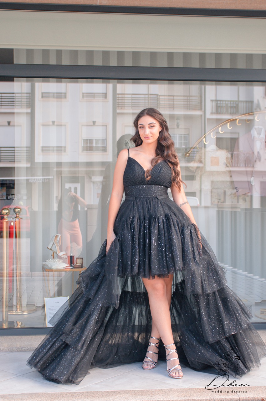 O vestido curto mega bufante de tule, disponível nas cores preto ou verde, é uma peça ousada e cheia de atitude. O tule volumoso cria um visual dramático e impactante, perfeito para quem quer se destacar. A versão curta oferece um toque moderno e irreverente, enquanto o acessório transformador — uma saia removível — permite estender o vestido, tornando-o longo e ainda mais glamouroso. Esse detalhe versátil faz toda a diferença, permitindo adaptar o look para diferentes ocasiões com muito estilo e sofisticação.