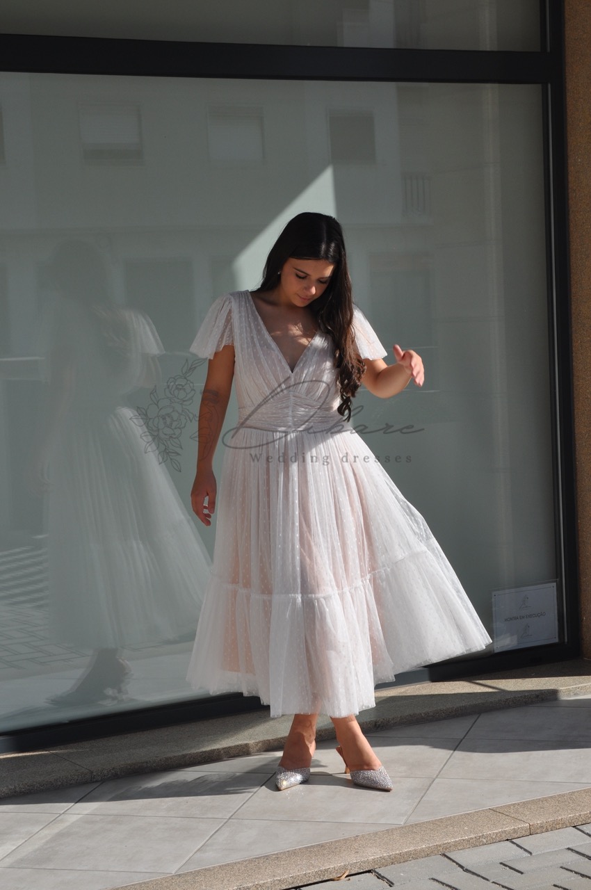 Evocando uma estética de bailarina moderna este vestido é perfeito para eventos especiais, desde cerimónias civis a festas de gala.