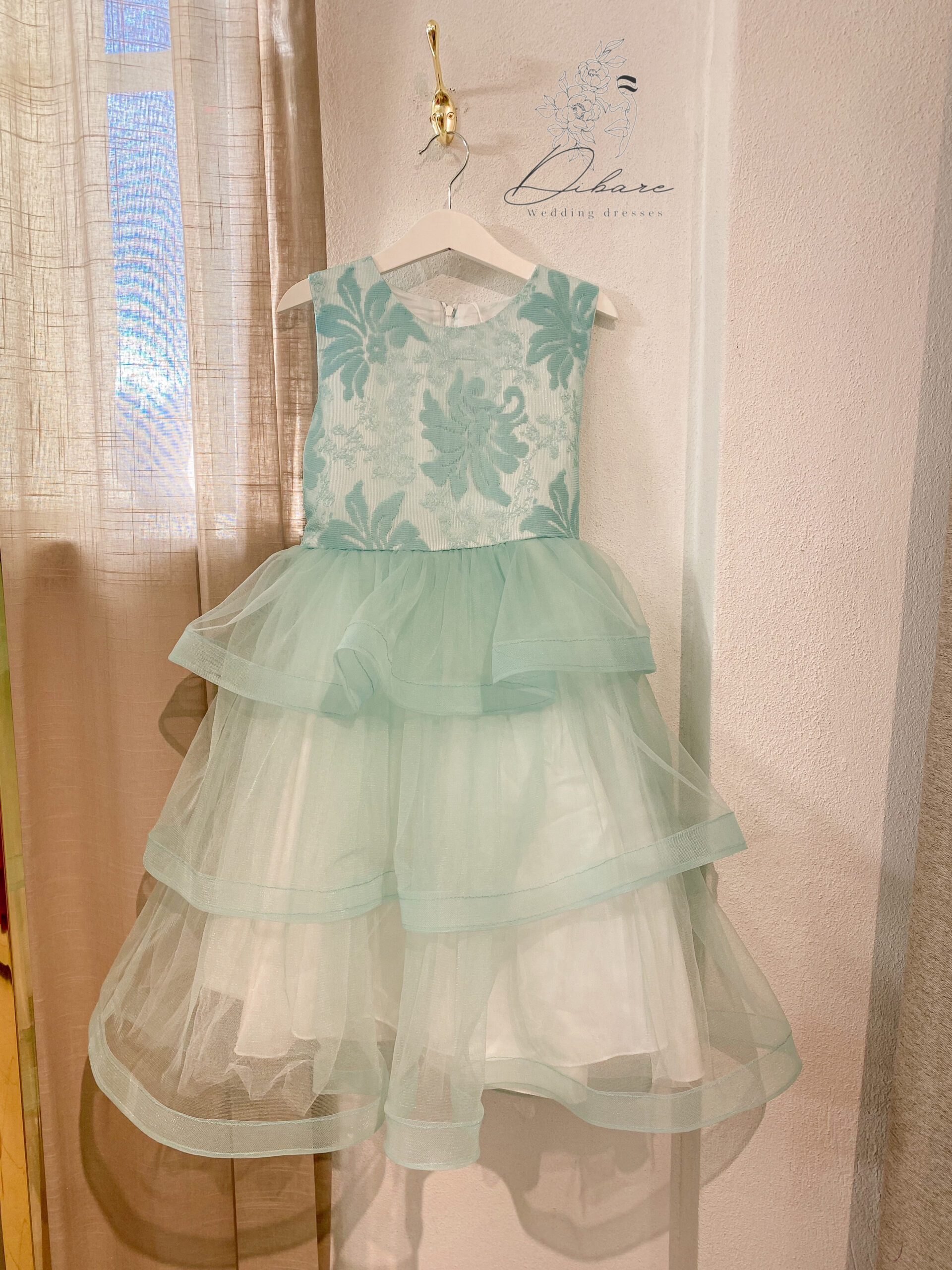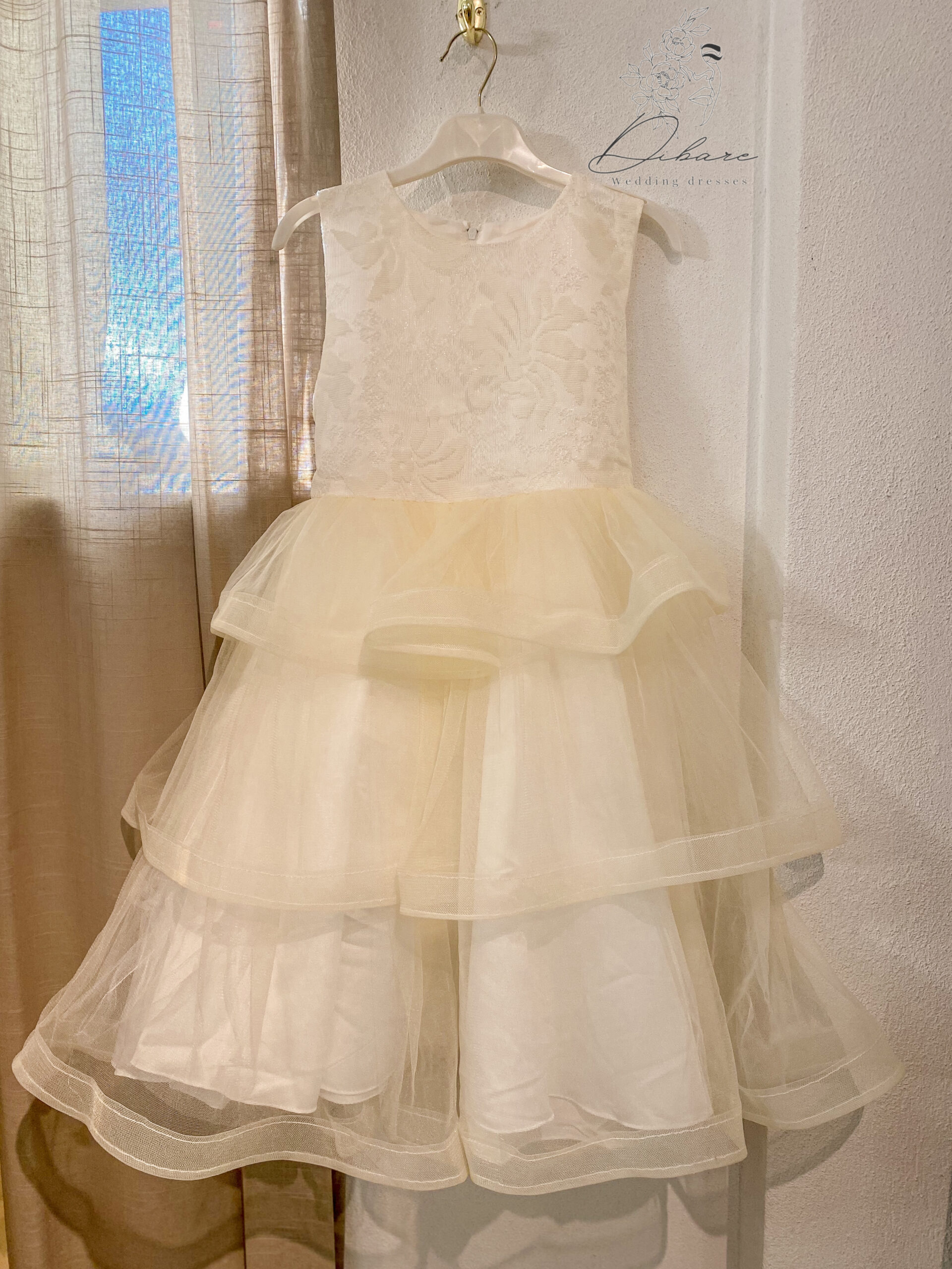 Este deslumbrante vestido de cerimónia para criança é a escolha perfeita para momentos inesquecíveis, combinando a delicadeza do design clássico com detalhes de alta costura. O corpete apresenta um trabalho requintado em renda floral ou bordado sobreposto, que confere uma textura rica e sofisticada à peça. O grande destaque deste modelo é a sua saia volumosa e etérea, composta por várias camadas de tule fluido que criam um efeito de cascata leve e gracioso. O tom creme ou marfim suave proporciona uma aura de pureza e elegância, tornando-o ideal para ocasiões formais onde o brilho e o encanto são essenciais. Com um corte sem mangas e um acabamento impecável.