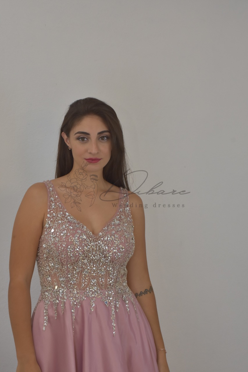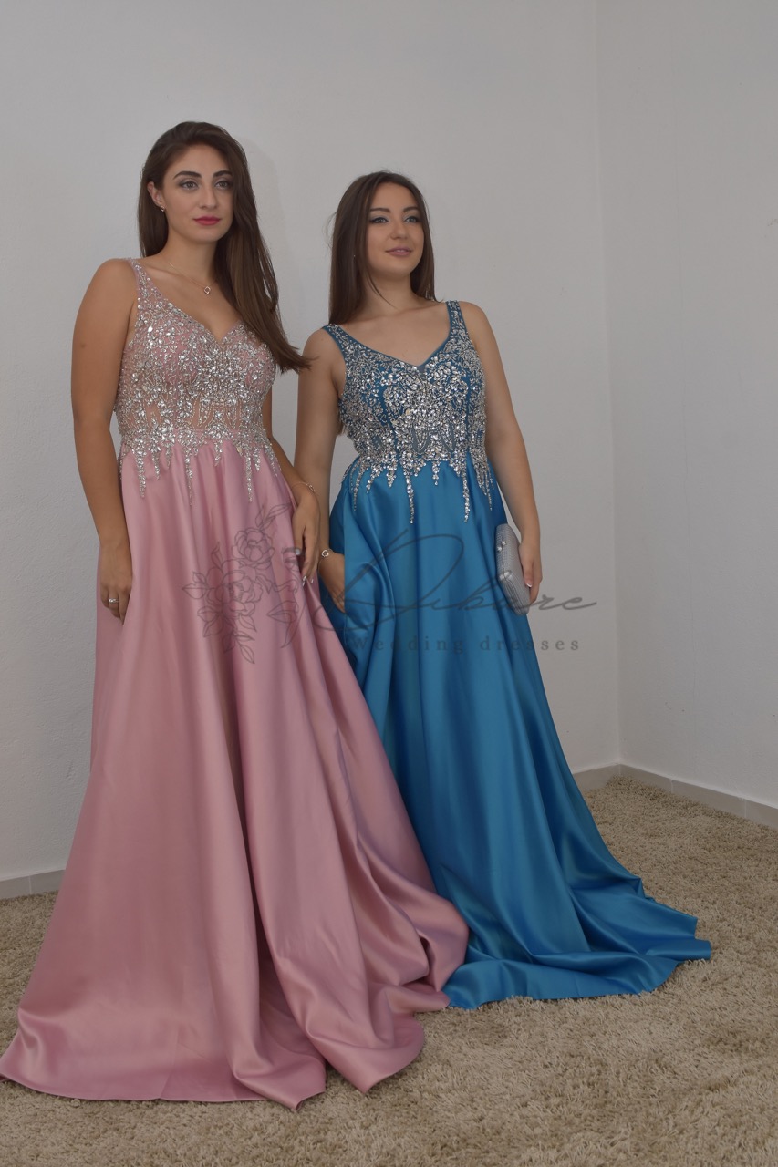Um vestido longo que destaca um corpete adornado com brilhantes, criando um efeito cintilante e sofisticado. O corpete é meticulosamente detalhado, oferecendo um ajuste refinado e glamour. O vestido é confeccionado em um tecido suave e firme, que proporciona um caimento impecável e um conforto luxuoso. A combinação do brilho dos brilhantes com a riqueza do tecido resulta em uma peça marcante, ideal para eventos formais e ocasiões especiais, onde se busca um visual deslumbrante e sofisticado.