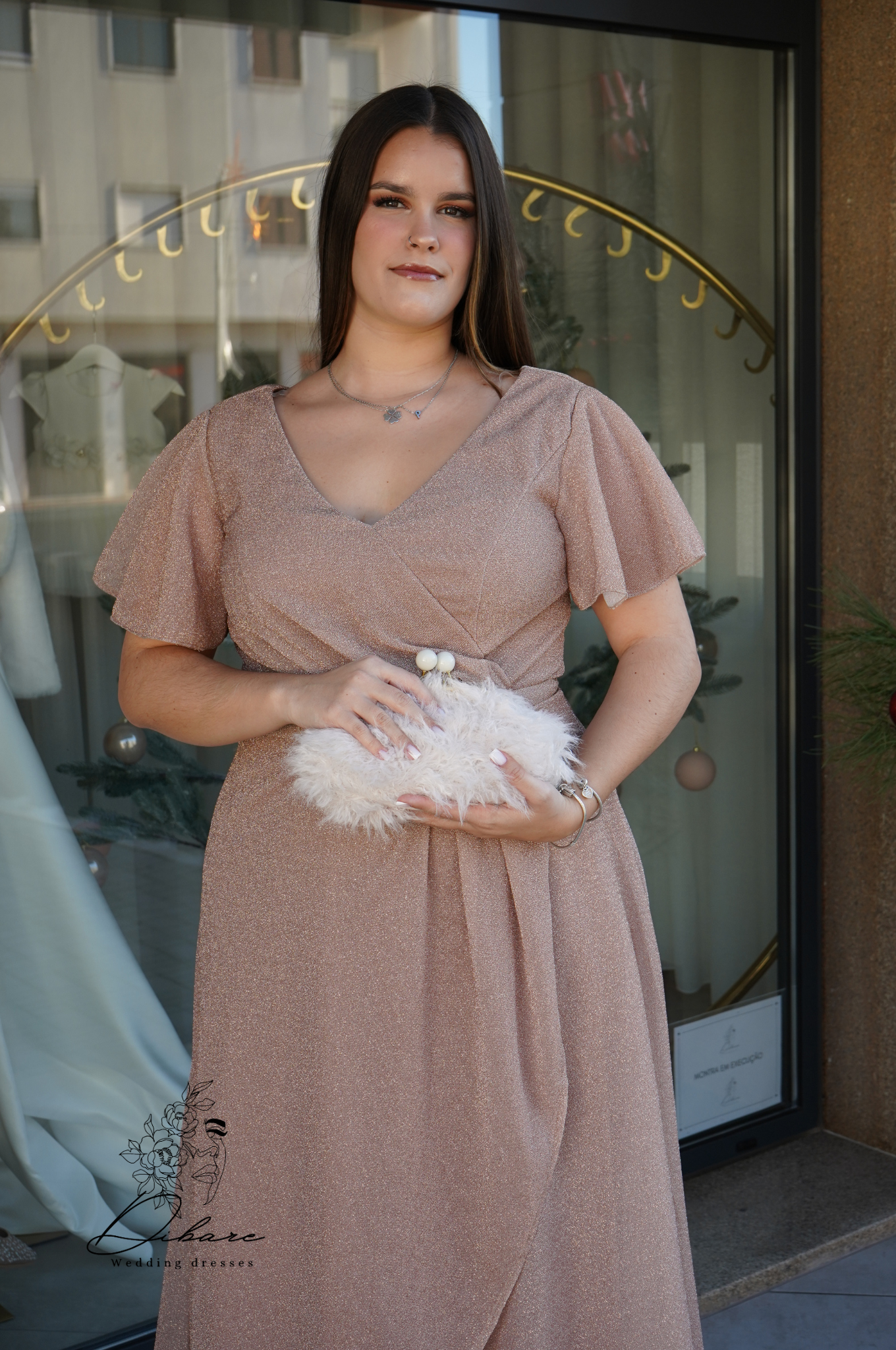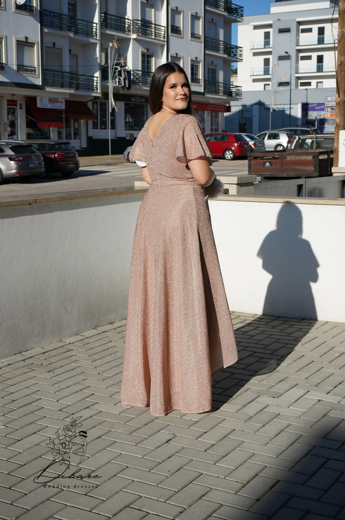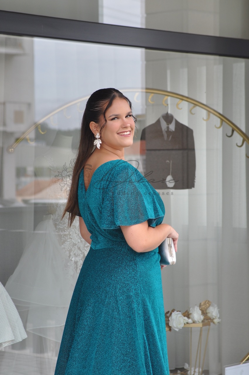 Seja para uma madrinha de casamento ou para uma convidada de um baile de gala, este vestido transmite uma sofisticação serena e atemporal.